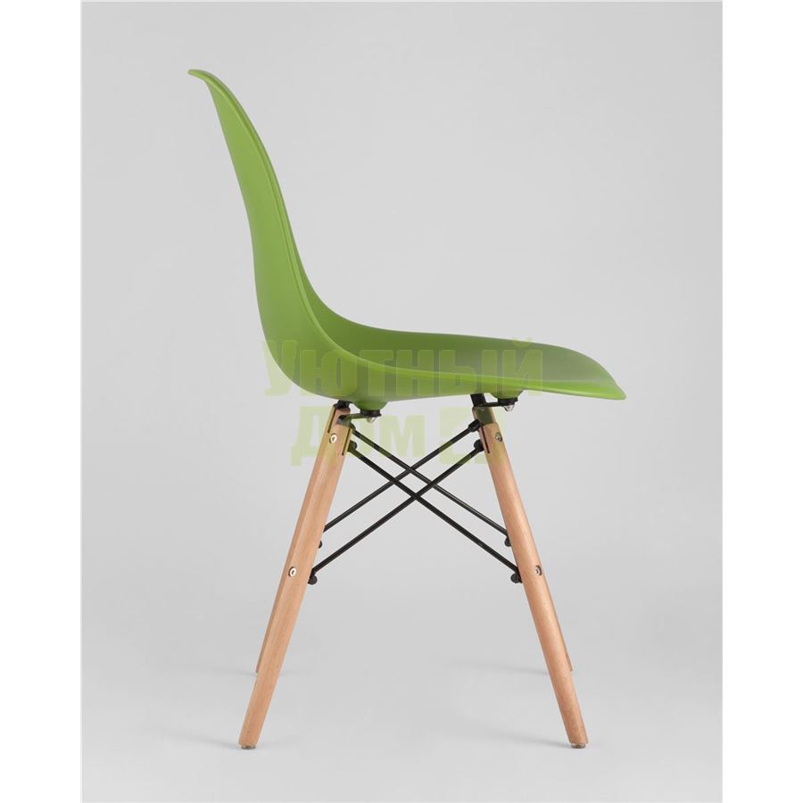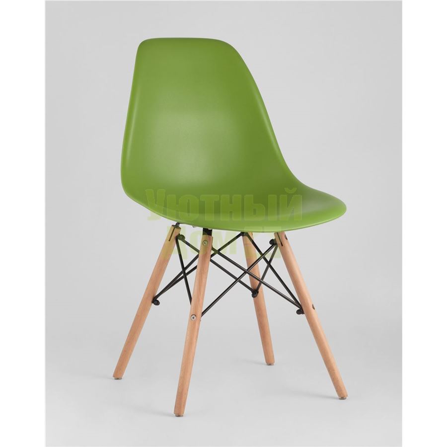 Стул DSW зеленый, литой полипропилен, стальной каркас, массив бука