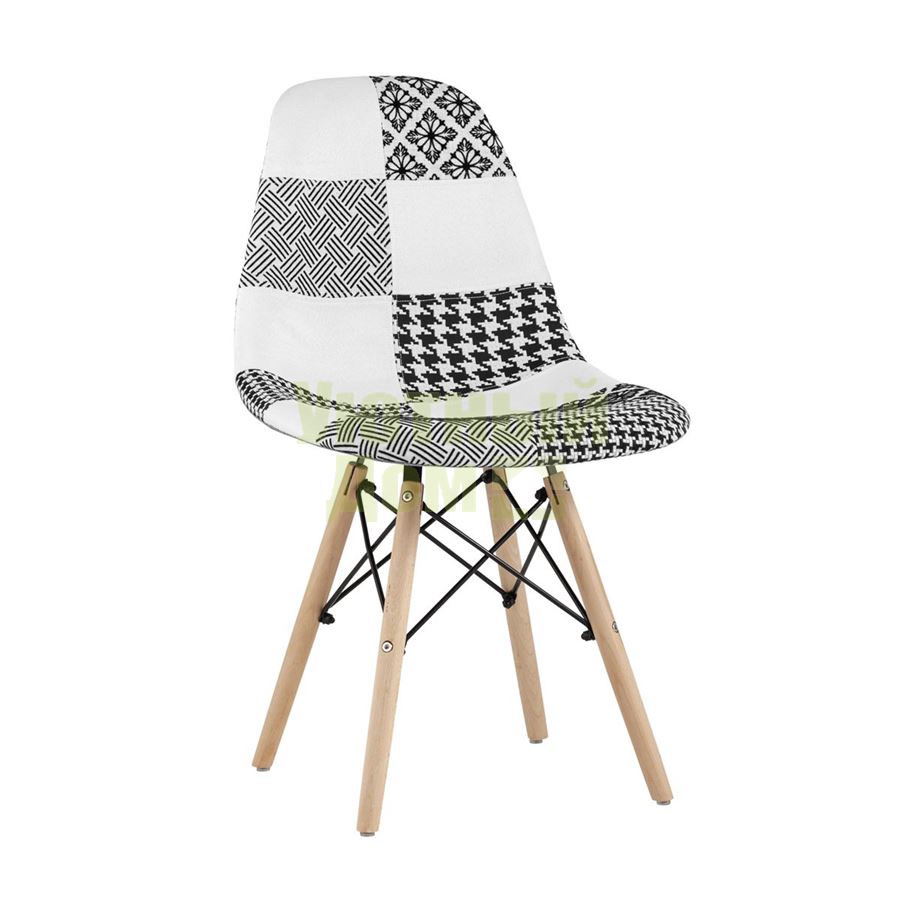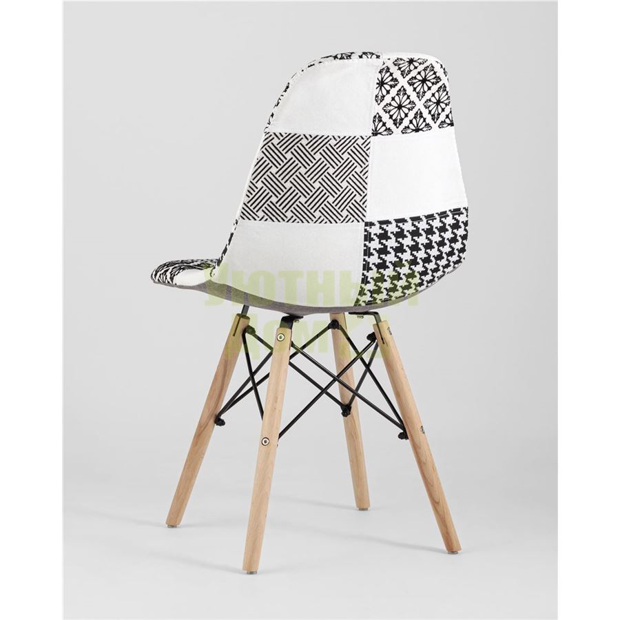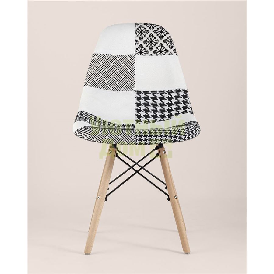 Описание: Стул Eames обивка в стиле пэчворк черно-белый, ножки массив бука