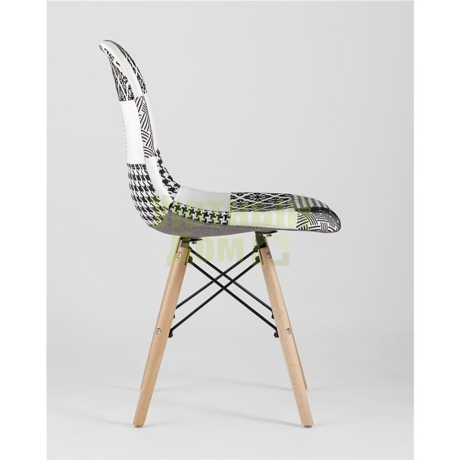 Стул Eames обивка в стиле пэчворк черно-белый, ножки массив бука доставляется в пределах МКАД бесплатно, при отправке в регионы России - бесплатно сдадим в ТК ПЭК.