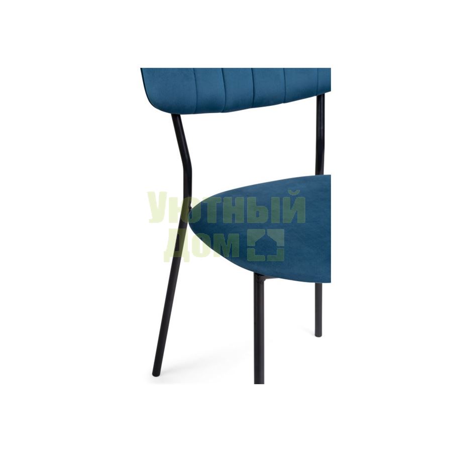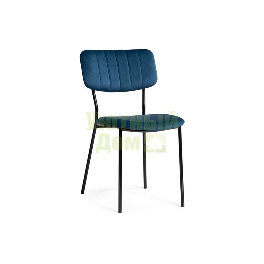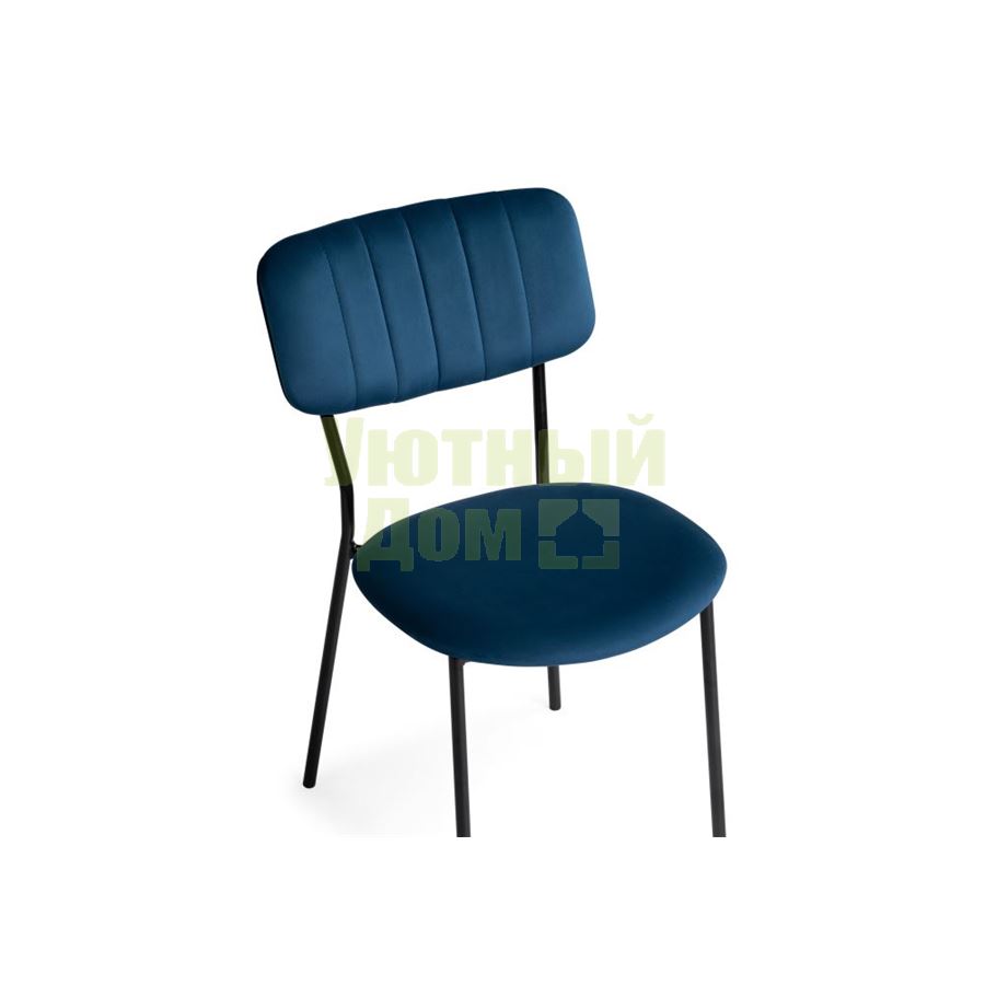 Материал каркаса - Металл; Материал сиденья - Велюр; Материал ножек - Металл; Материал обивки - Велюр; Цвет каркаса - Черный; Цвет сиденья - Синий; Цвет ножек - Черный; Цвет обивки - Синий; Ширина - 46; Глубина - 60; Высота - 82; Ширина сиденья - 46; Глубина сиденья - 44; Высота сиденья - 48;