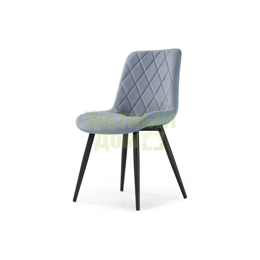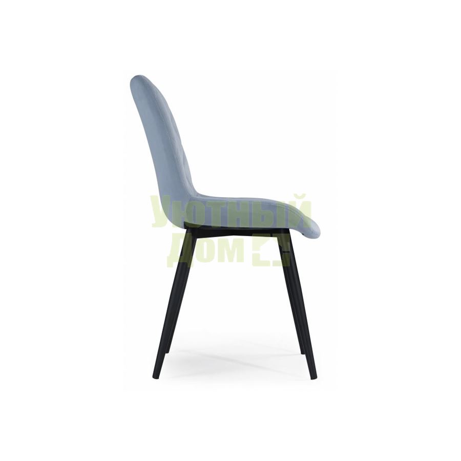 Ширина: 49; Глубина: 58; Высота: 85; Материал каркаса: Окрашенный металл; Материал ножек: Окрашенный металл; Цвет каркаса: Black; Материал сиденья: Велюр; Цвет сиденья: Голубой; Ширина сиденья: 49; Глубина сиденья: 40; Высота сиденья: 43; Вес: 5.35; Объем: 0.065; Количество в упаковке: 4; Производитель: Мебель Китая