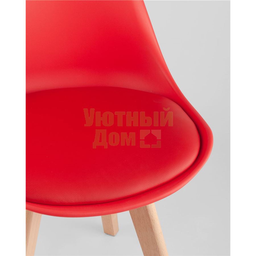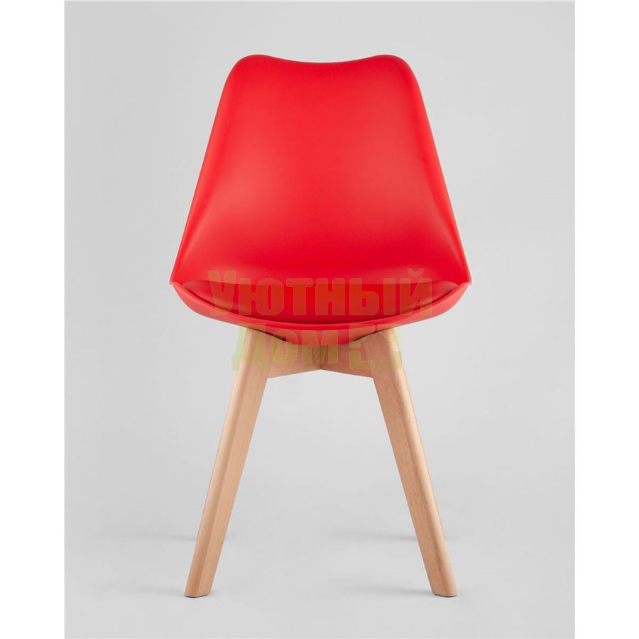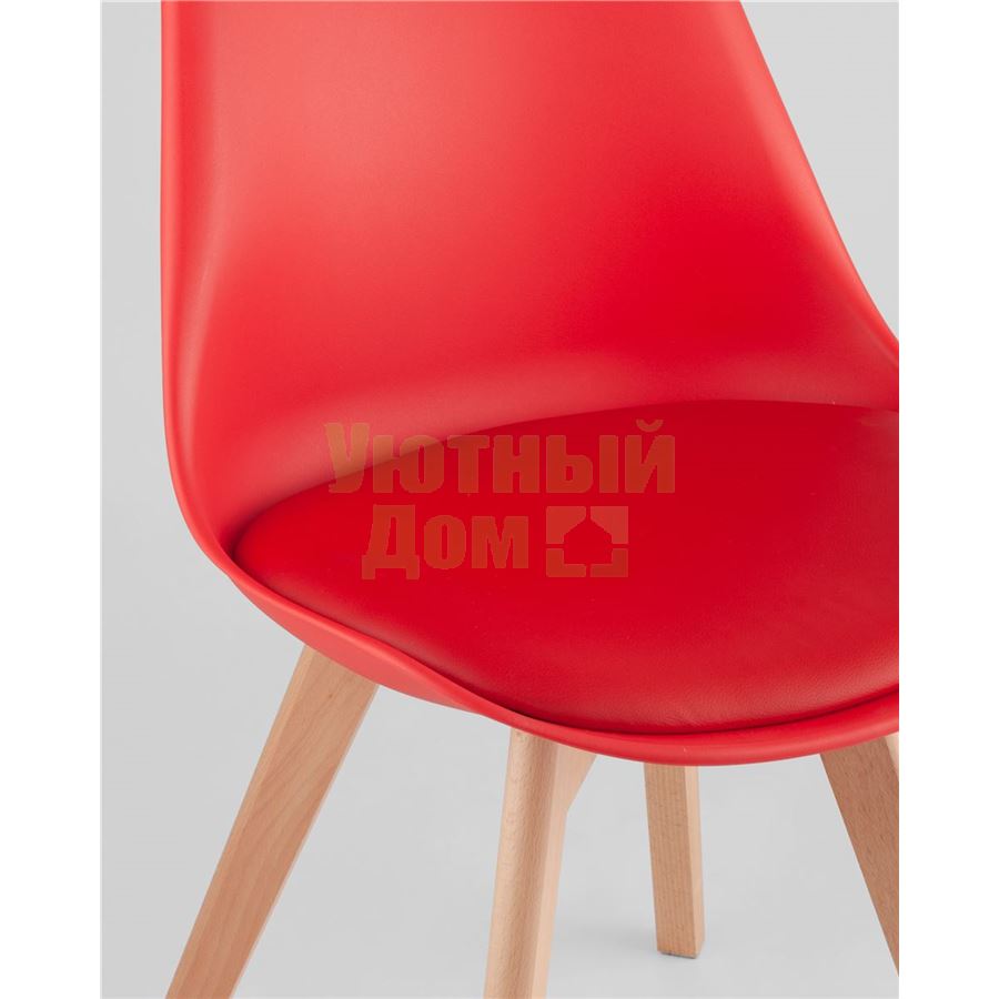 Стул Frankfurt красный, сиденье из сочетания пластика и экокожи, ножки деревянные доставляется в пределах МКАД бесплатно, при отправке в регионы России - бесплатно сдадим в ТК ПЭК.