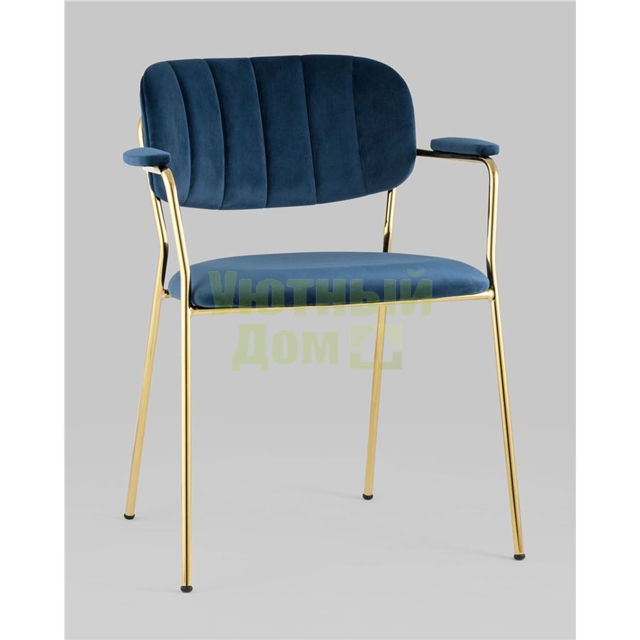 Современный обеденный стул с подлокотниками и металлическими ножками. Обивка выполнена из мягкого велюра. Металлический каркас золотого цвета огибает спинку и плавно переходит из подлокотников в ножки. Широкое сиденье обеспечивает удобную посадку и уют. На подлокотниках для дополнительного комфорта предусмотрены мягкие накладки.