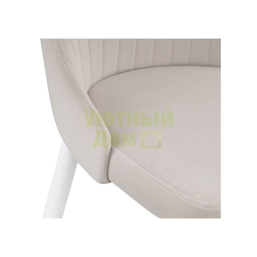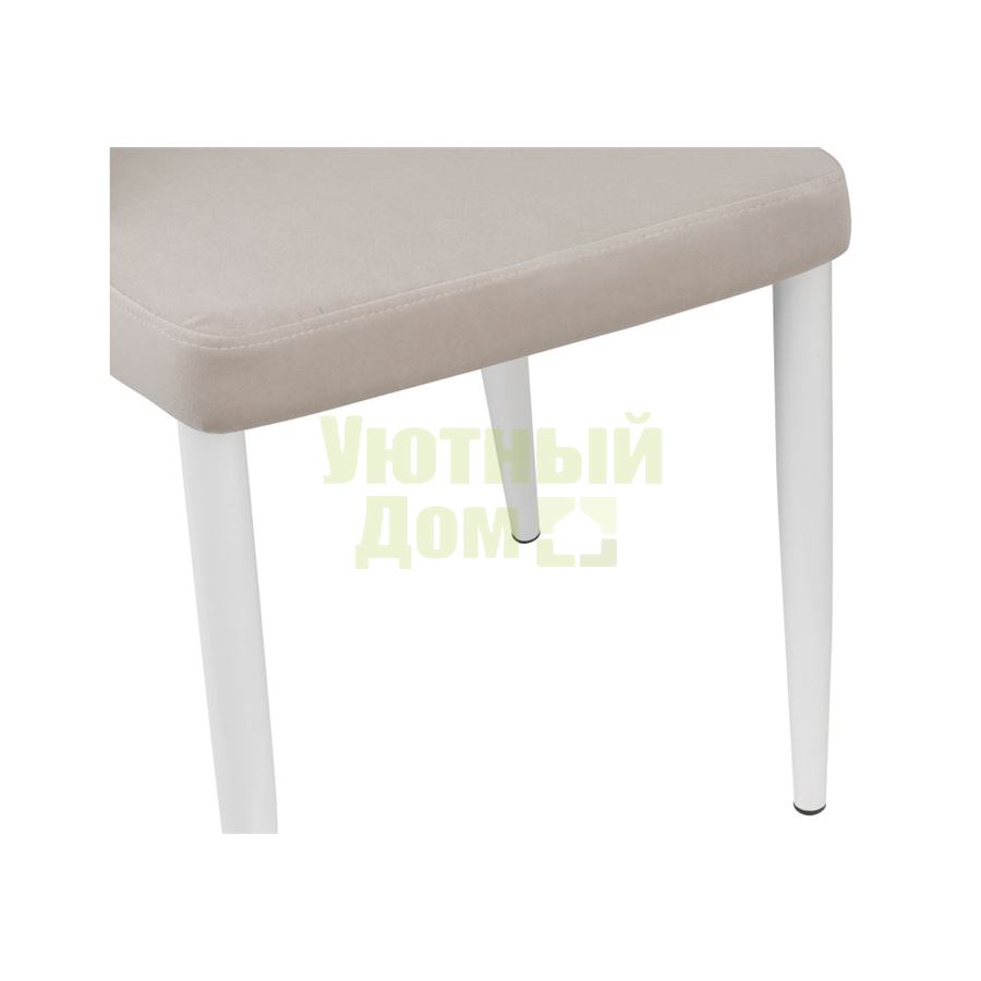 Материал каркаса - Окрашенный металл; Материал сиденья - Велюр; Материал ножек - Окрашенный металл; Материал обивки - Велюр; Цвет каркаса - Белый; Цвет сиденья - Бежевый; Цвет ножек - Белый; Цвет обивки - Бежевый; Ширина - 47; Глубина - 57; Высота - 89; Ширина сиденья - 44; Глубина сиденья - 44; Высота сиденья - 47;