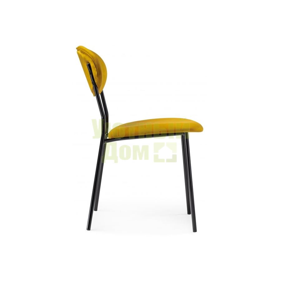Материал каркаса - Металл; Материал сиденья - Велюр; Материал ножек - Металл; Материал обивки - Велюр; Цвет каркаса - Черный; Цвет сиденья - Желтый; Цвет ножек - Черный; Цвет обивки - Желтый; Ширина - 46; Глубина - 60; Высота - 82; Ширина сиденья - 46; Глубина сиденья - 45; Высота сиденья - 48;