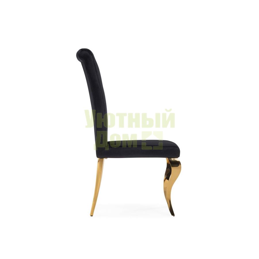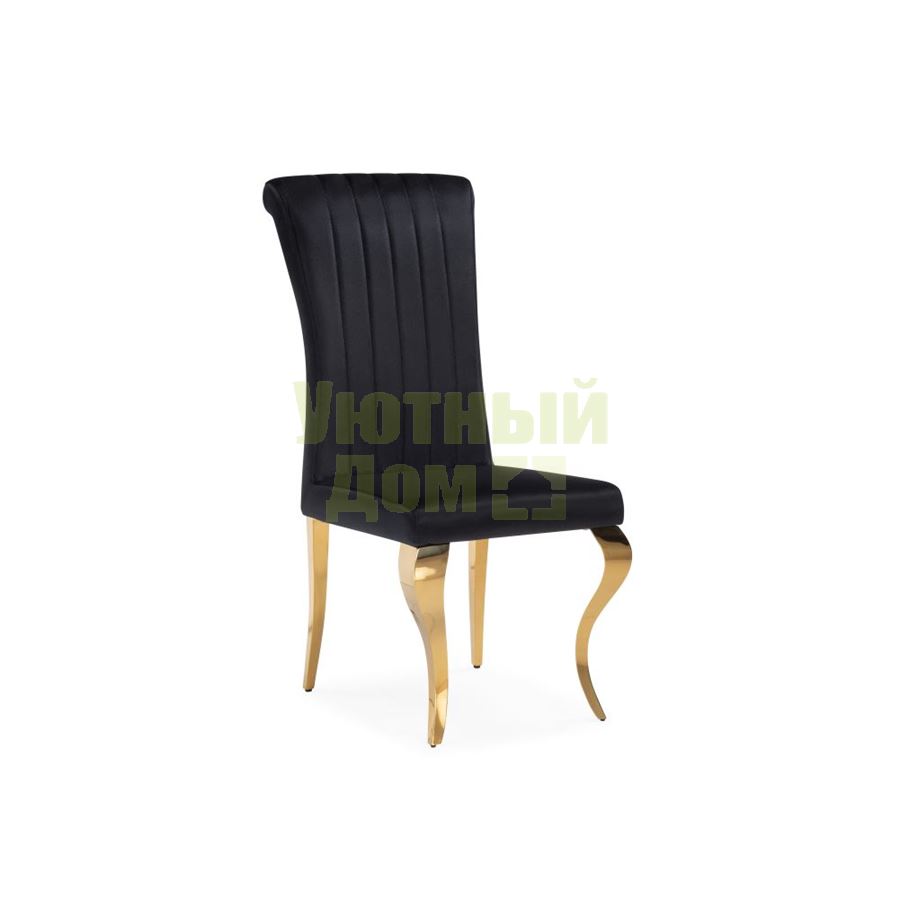 Материал каркаса - Металл; Материал сиденья - Велюр; Материал ножек - Металл; Материал обивки - Велюр; Цвет каркаса - Золотой; Цвет сиденья - Черный; Цвет ножек - Золотой; Цвет обивки - Черный; Ширина - 47; Глубина - 68; Высота - 105; Ширина сиденья - 44; Глубина сиденья - 47; Высота сиденья - 46;