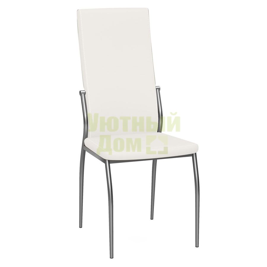Стул на металлокаркасе Мартини. Каркас - нержавеющая сталь. Мягкая спинка и сиденье из пенополиуретана обиты экокожей белого цвета. Габаритные размеры (см): Ширина: 45; Глубина: 39; Высота: 100; Высота сиденья: 47