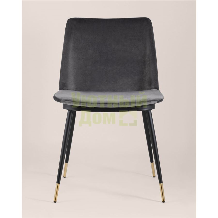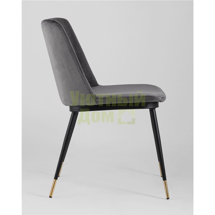 Стул Мелисса велюр цвет темно-серый ножки металл с золотым декором доставляется в пределах МКАД бесплатно, при отправке в регионы России - бесплатно сдадим в ТК ПЭК.