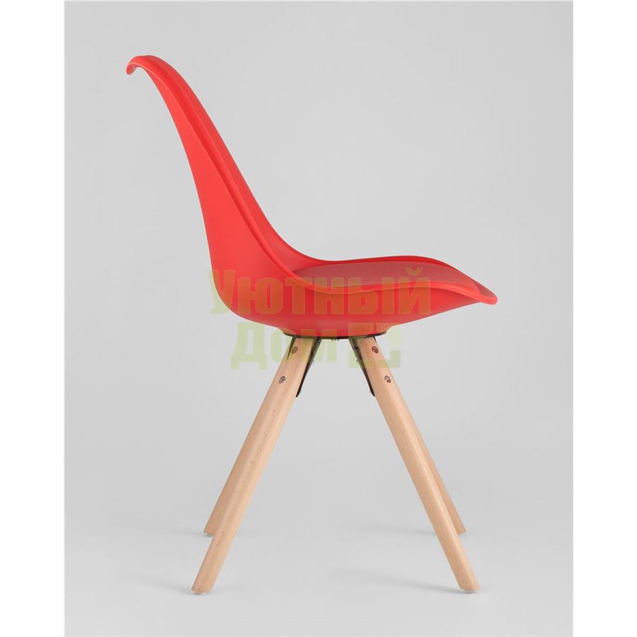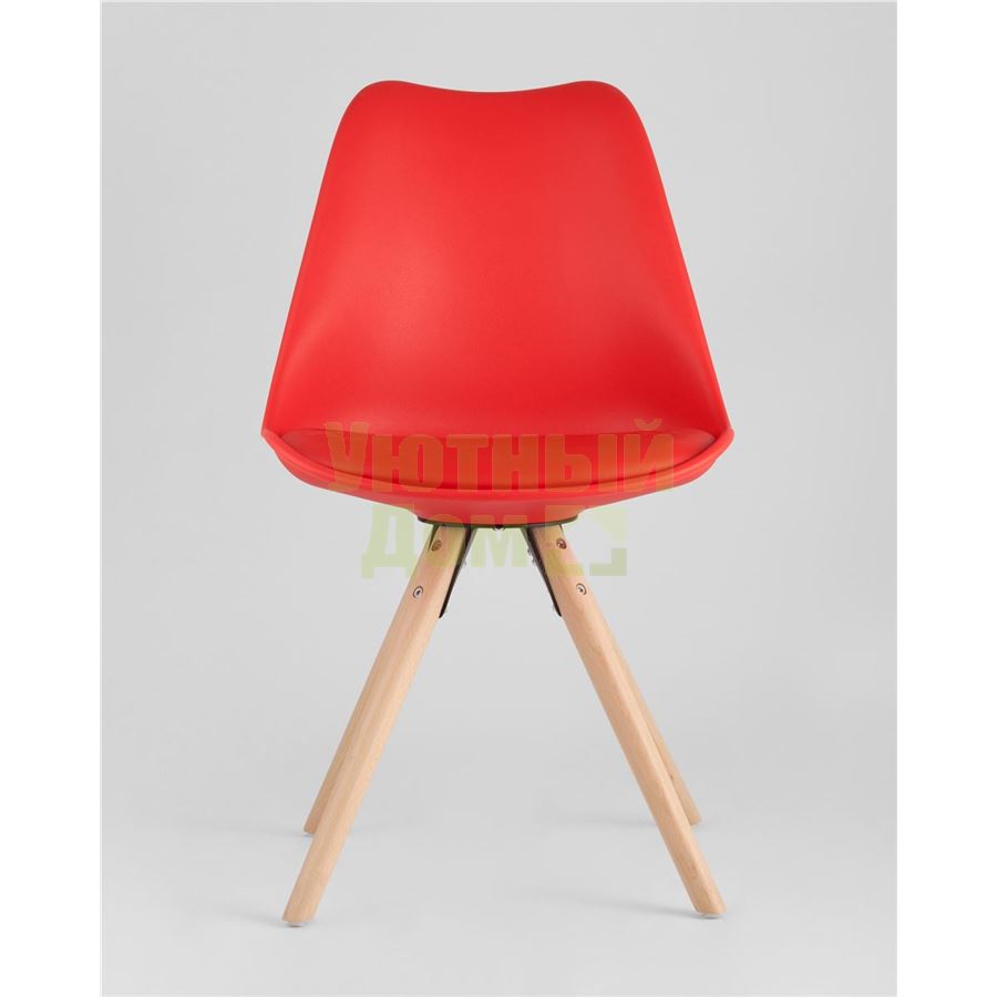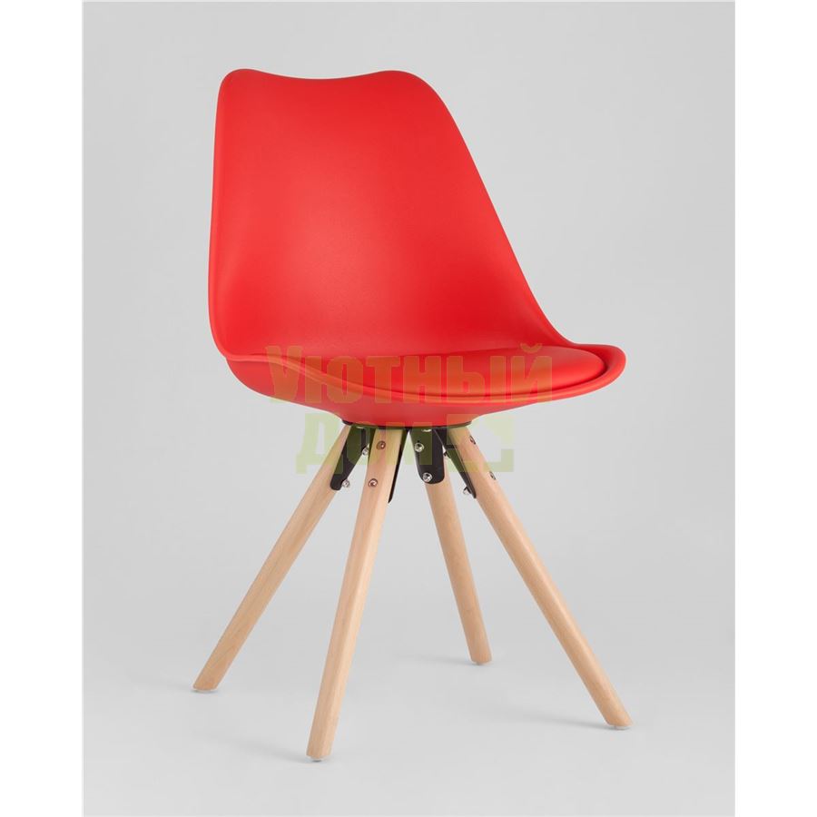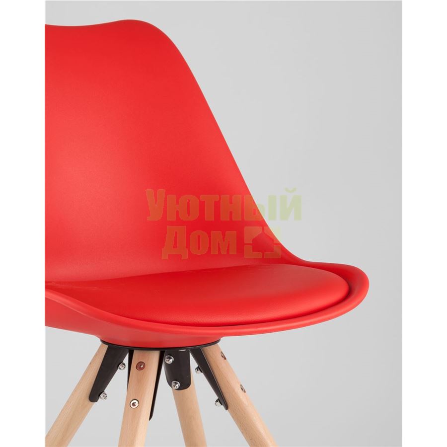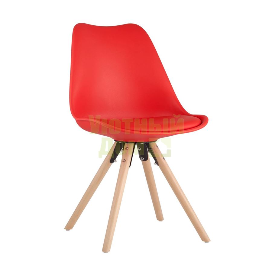 Стул мягкий Арианда красный, пластик, экокожа, каркас натуральный некрашеный массив бука