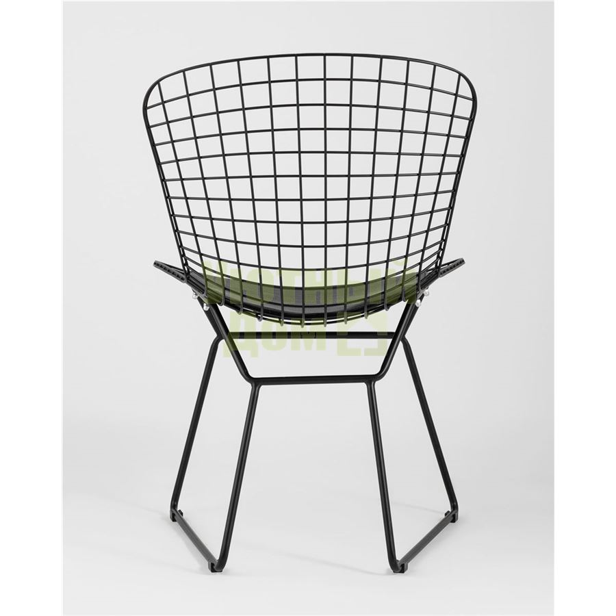Описание: Стул обеденный Bertoia металлический черный с черной подушкой из экокожи