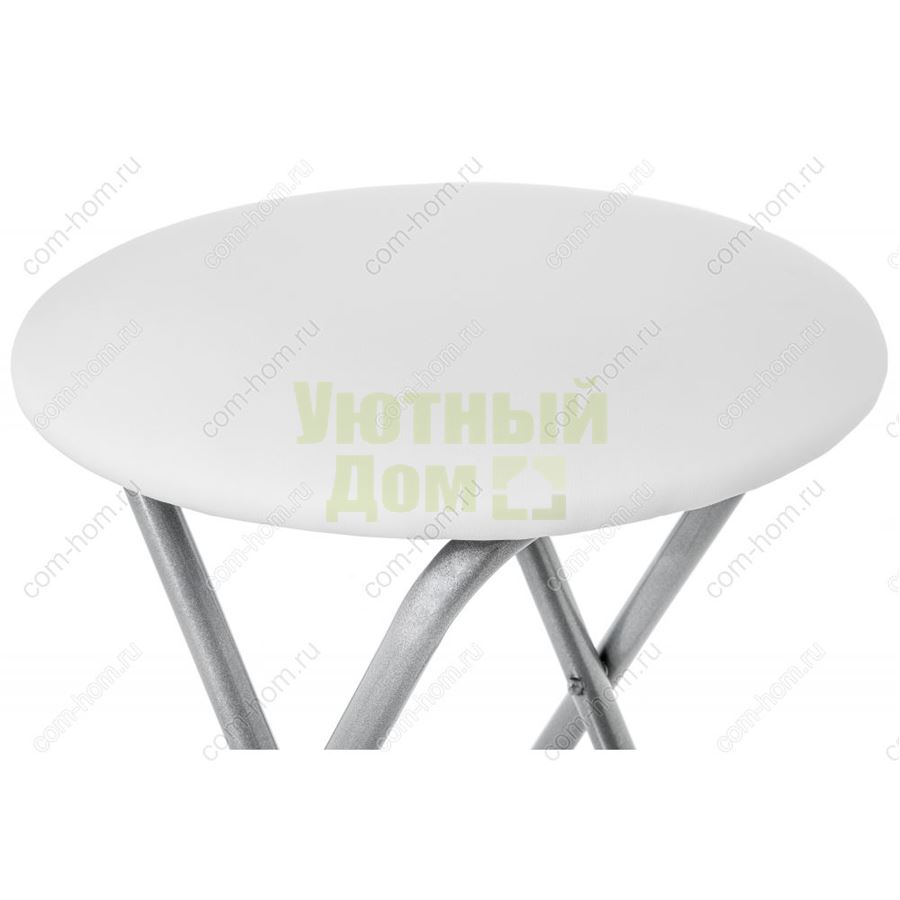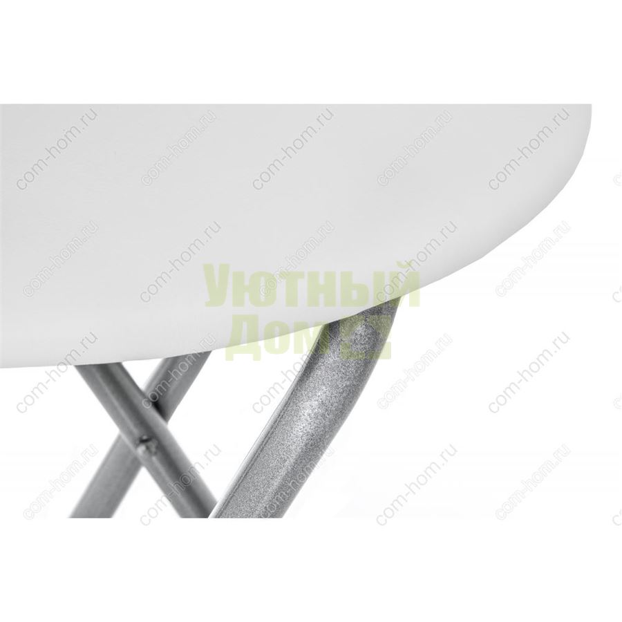 Форма сиденья: Круглая; Ширина: 38; Глубина: 38; Высота: 47; Материал каркаса: Металл; Цвет каркаса: Хромированный металл; Материал сиденья: Искусственная кожа; Цвет сидения: Белый; Раскладывание: Есть; Вес: 2.5; Объем: 0.04; Форма поставки: В собранном виде; Производитель: Россия