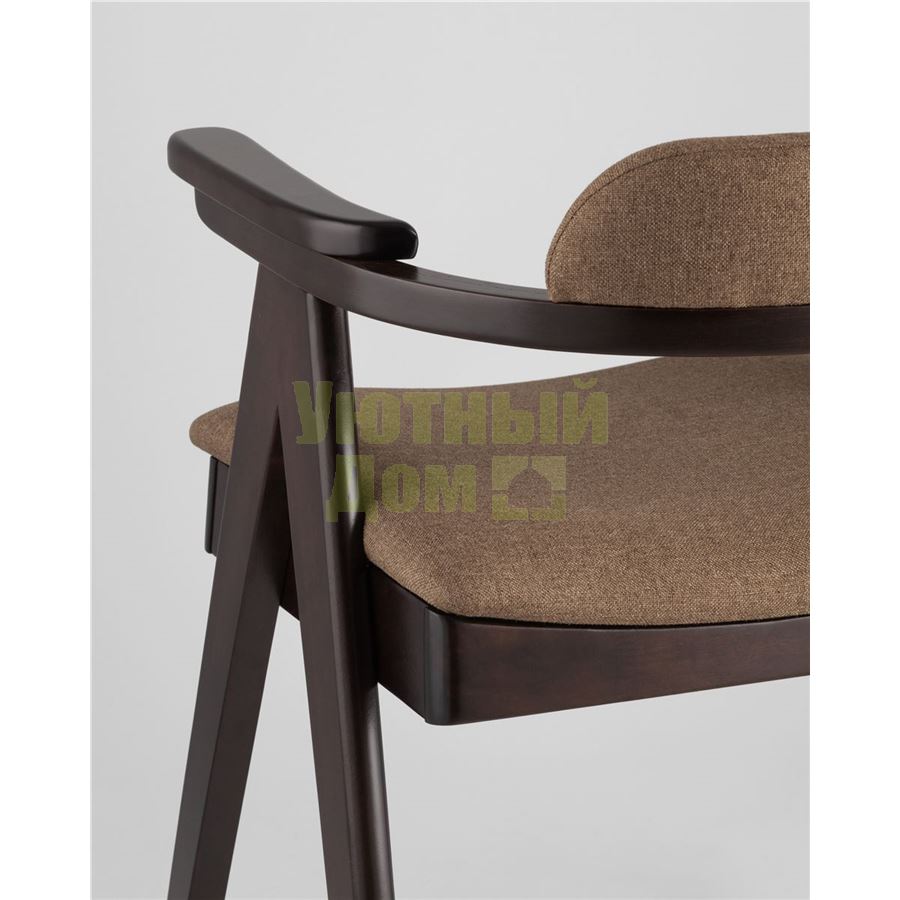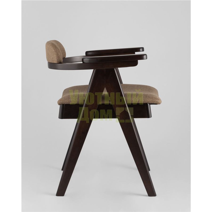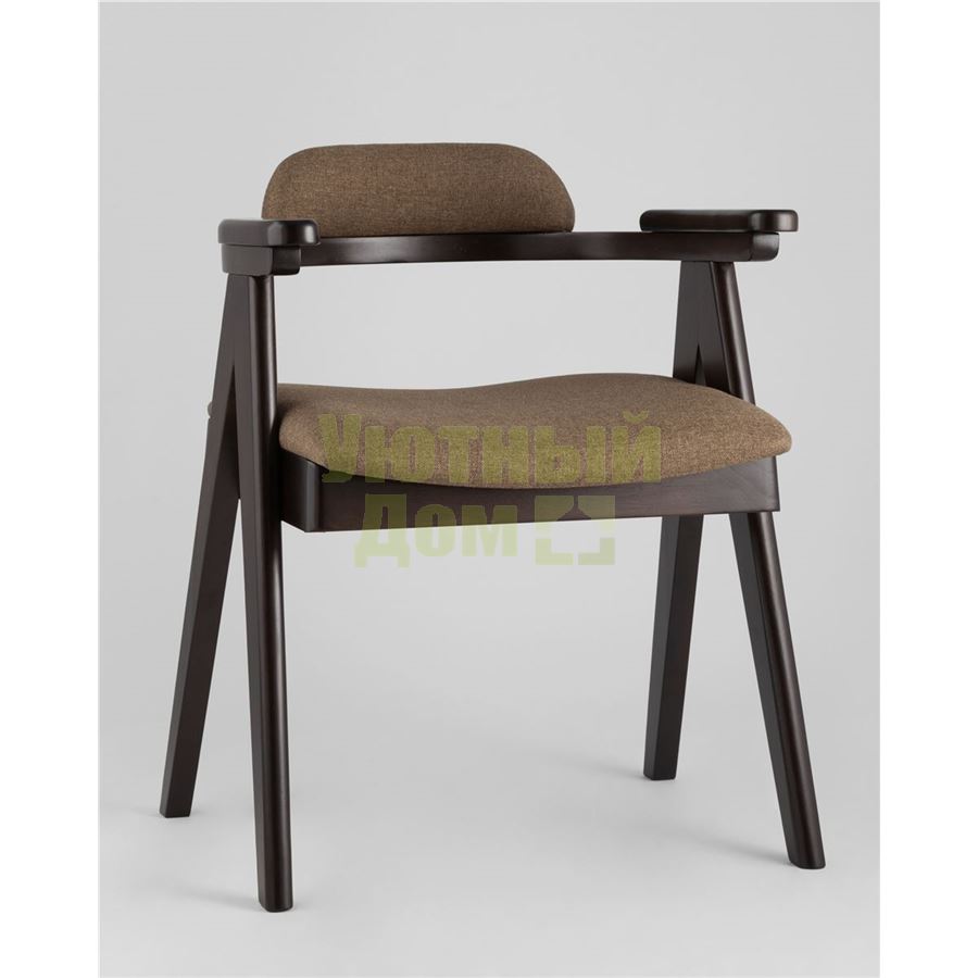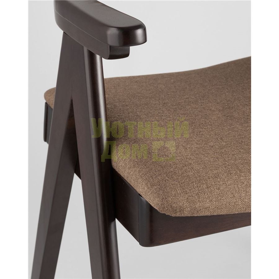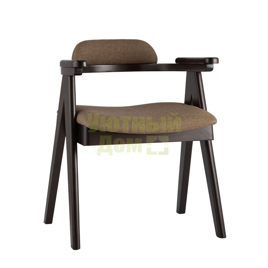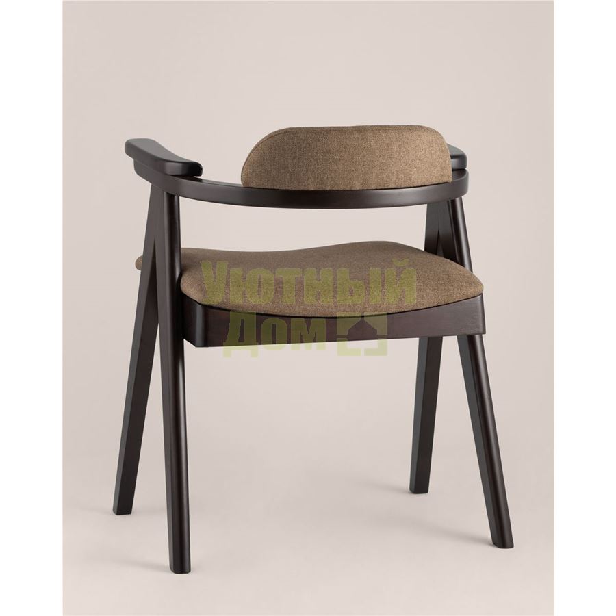 Купить Стул OLAV кофейный обеденный деревянный массив гeвеи с мягким сиденьем со спинкой и подлокотниками