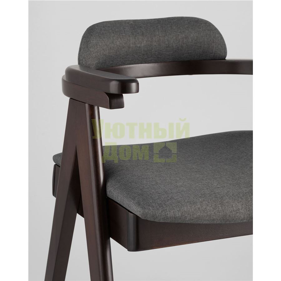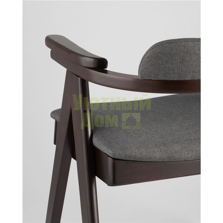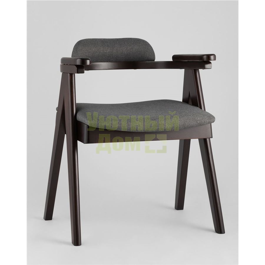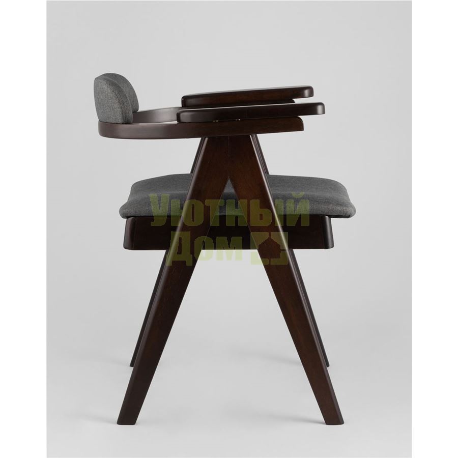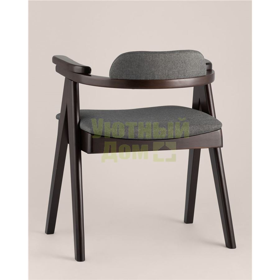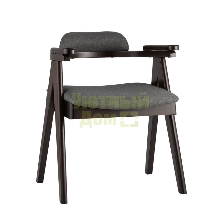Купить Стул OLAV темно-серый обеденный деревянный массив гeвеи с мягким сиденьем со спинкой и подлокотниками