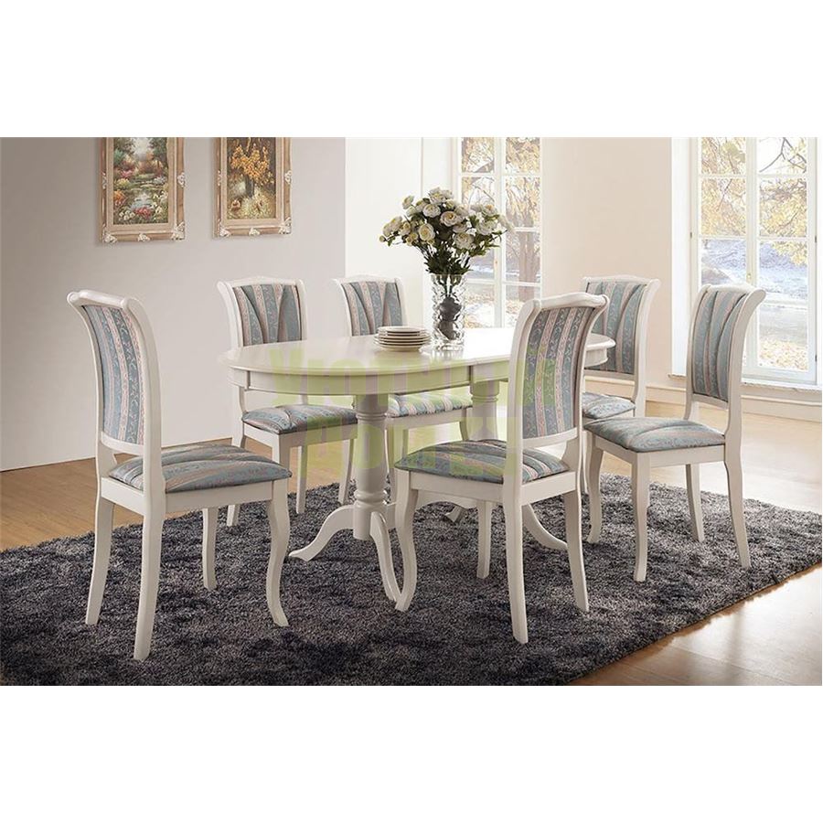 OPERA (ОПЕРА) – Классический итальянский стул с элегантными мягкими сидением и спинкой. Основание сделано из натуральной Гевеи. Обивка сидения и спинки нежного оттенка с витиеватым рисунком, красиво прострочена. Стул идеально подходит к столу Сиена.