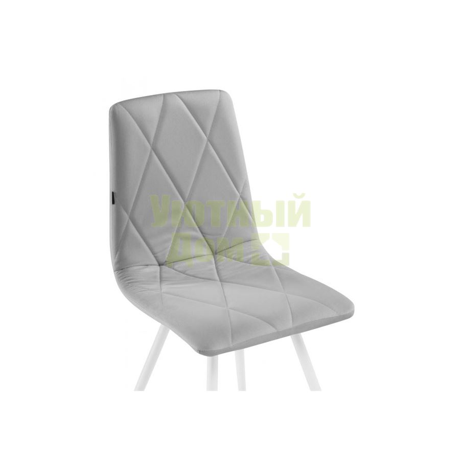 Материал каркаса - Металл; Материал сиденья - Велюр; Материал ножек - Металл; Материал обивки - Велюр; Цвет каркаса - Белый; Цвет сиденья - Серый; Цвет ножек - Белый; Цвет обивки - Серый; Ширина - 45; Глубина - 53; Высота - 88; Ширина сиденья - 44; Глубина сиденья - 40; Высота сиденья - 47;