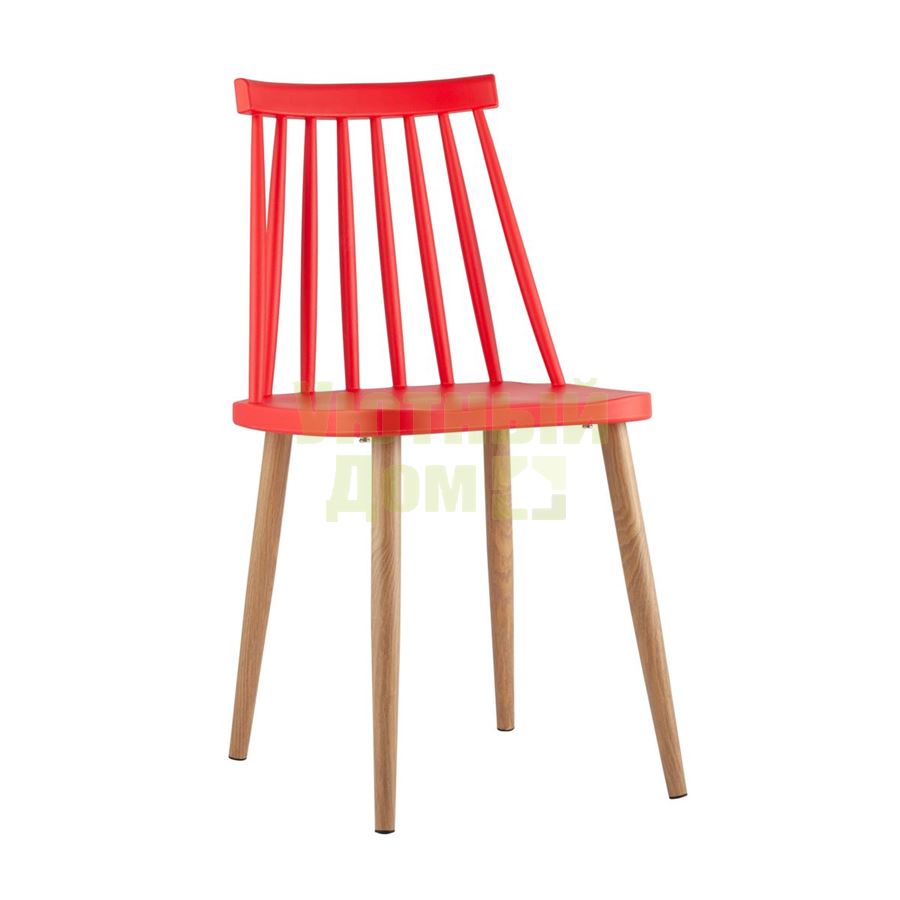 Купить Стул пластиковый Морган красный, ножки металлические с принтом под дерево