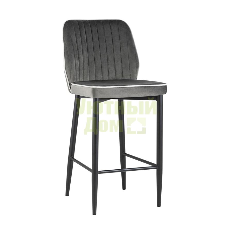 Купить Стул полубарный Лоренс антрацитовый обивка велюр ножки металл черный с подножкой
