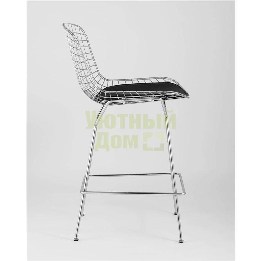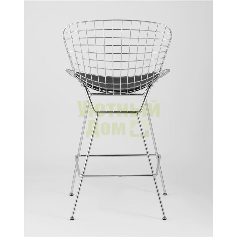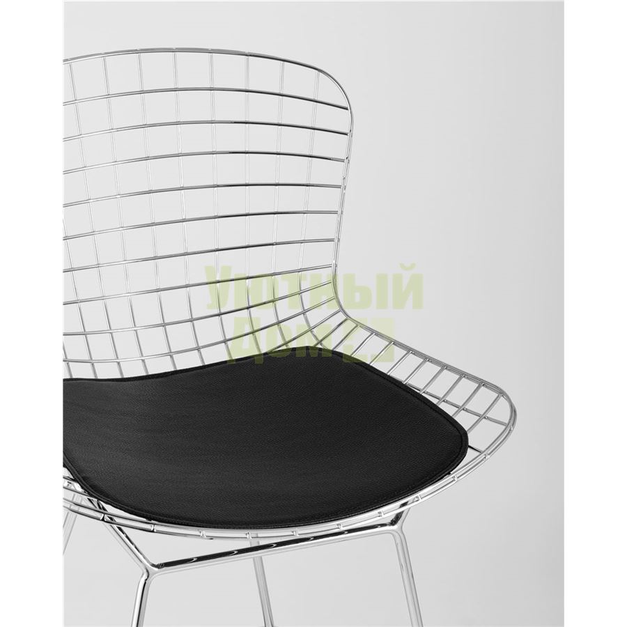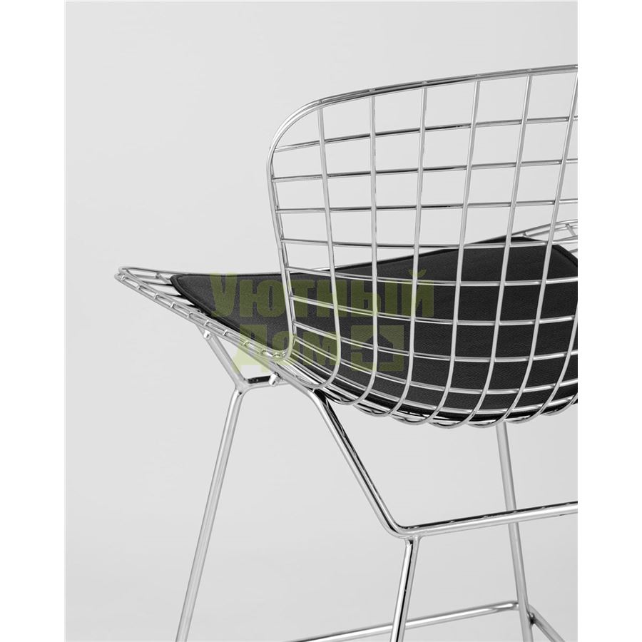 Купить Стул полубарный с низкой спинкой Bertoia хромированный металл с черной подушкой из экокожи