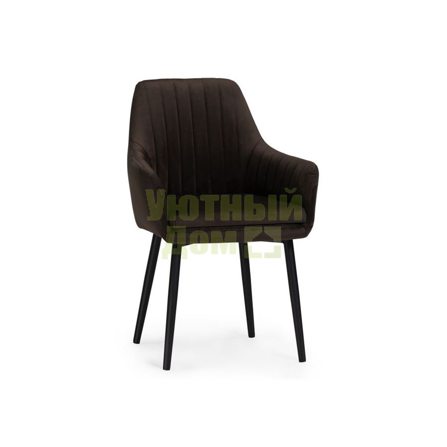 Высота подлокотников: 62 см. Материал каркаса - Металл; Материал сиденья - Велюр; Материал ножек - Металл; Материал обивки - Велюр; Цвет каркаса - Черный; Цвет сиденья - Коричневый; Цвет ножек - Черный; Цвет обивки - Коричневый; Ширина - 57; Глубина - 57; Высота - 86; Ширина сиденья - 43; Глубина сиденья - 43; Высота сиденья - 49;