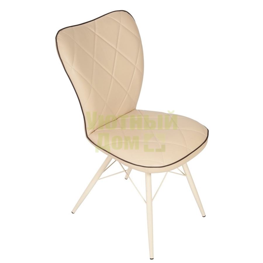 Мягкий стул в современном стиле. Металлическое основание выполнено из усиленной трубы с толщиной стенок 1,5 мм, окрашено порошковой краской. Пластиковые заглушки на ножках обезопасят напольное покрытие от повреждений. Мягкая спинка и сиденье из пенополиуретана обиты экокожей кремового цвета, оформлены стяжками. По периметру мягкие элементы стула декорированы узкой полосой из экокожи коричневого цвета. Спинка имеет дополнительное усиление поясницы. Надежная конструкция и эргономичная форма стула позволяет с комфортом разместиться за обеденным столом людям с различной комплекцией. Максимальная нагрузка на стул Риоха - 100 кг. Стулья поставляются в разобранном виде, упакованы в 2 коробки объемом - 0,14 м3. Вес одного стула - 9 кг.