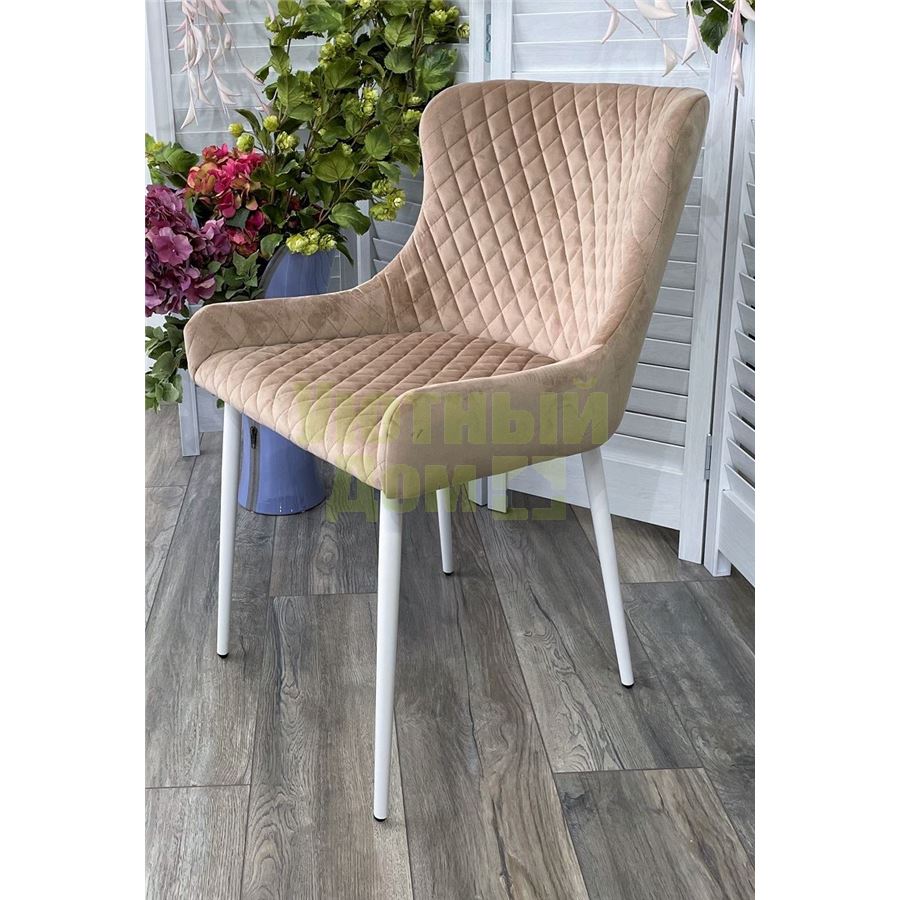 Стул САЛЬЕРИ, цвет бежевый #C03, велюр / белый каркас М-City в стиле: Современный отлично дополнит интерьер таких помещений как : Гостиная.