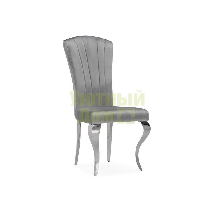 Материал каркаса - Металл; Материал сиденья - Велюр; Материал ножек - Металл; Материал обивки - Велюр; Цвет каркаса - Хромированный металл; Цвет сиденья - Серый; Цвет ножек - Хромированный металл; Цвет обивки - Серый; Ширина - 51; Глубина - 64; Высота - 106; Ширина сиденья - 49; Глубина сиденья - 46; Высота сиденья - 47;