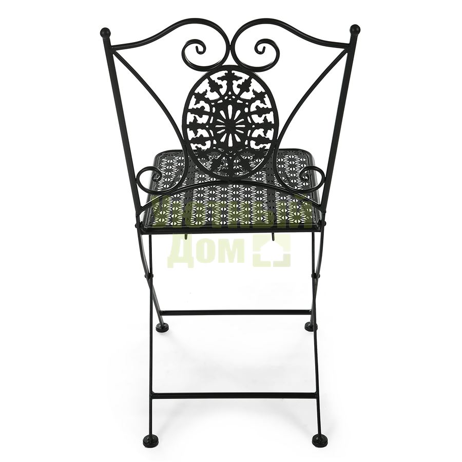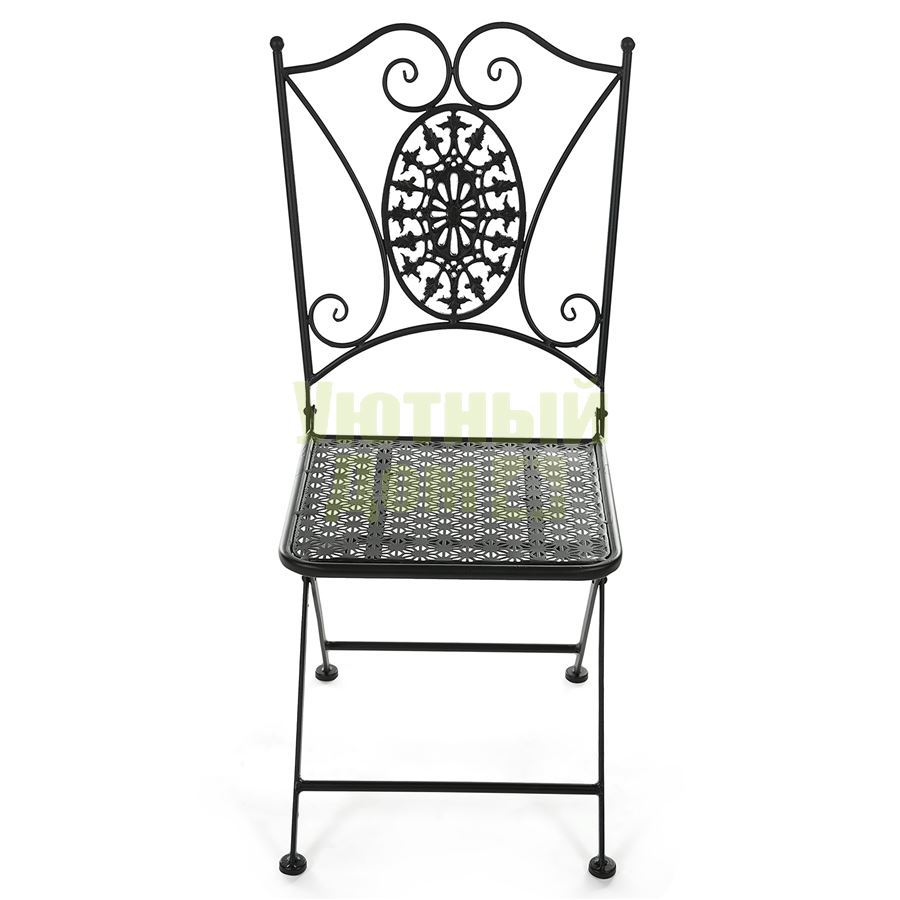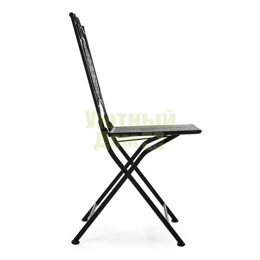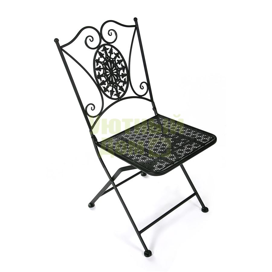 Компактный складной стул - незаменимый атрибут городского балкона, загородной веранды или сада. При необходимости он складывается и не занимает много места при хранении. Модель изготовлена из высококачественного стального сплава. Отделка выполнена в классическом черном цвете с эффектом состаривания. Покраска ― порошковое напыление, устойчивое к воздействию влаги и температурным перепадам.