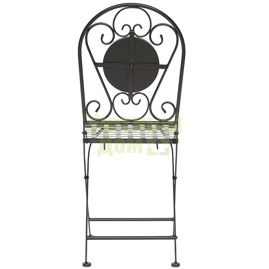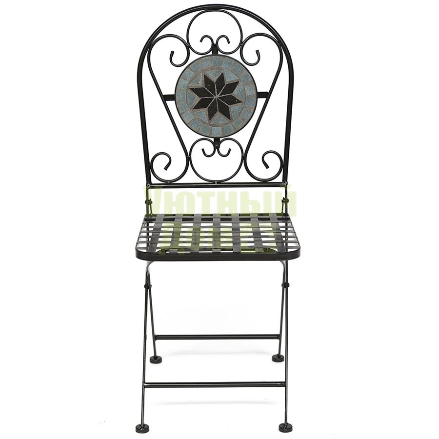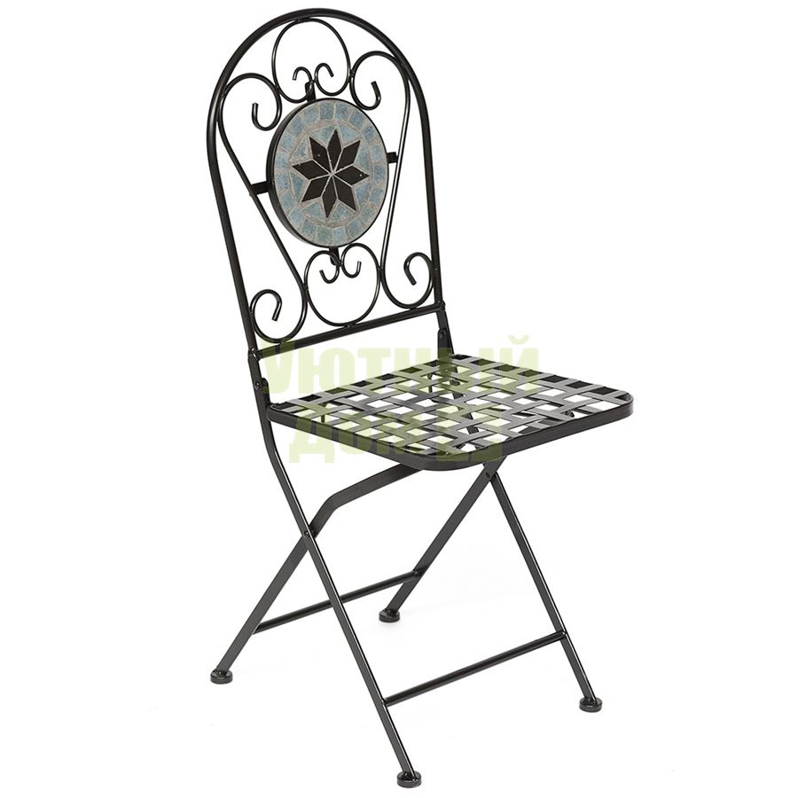 Стул из металла с красивой мозаикой на на спинке, складывающийся. Поставляется 2 шт в 1 коробке. Объем: 0,079 м3