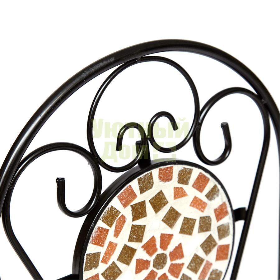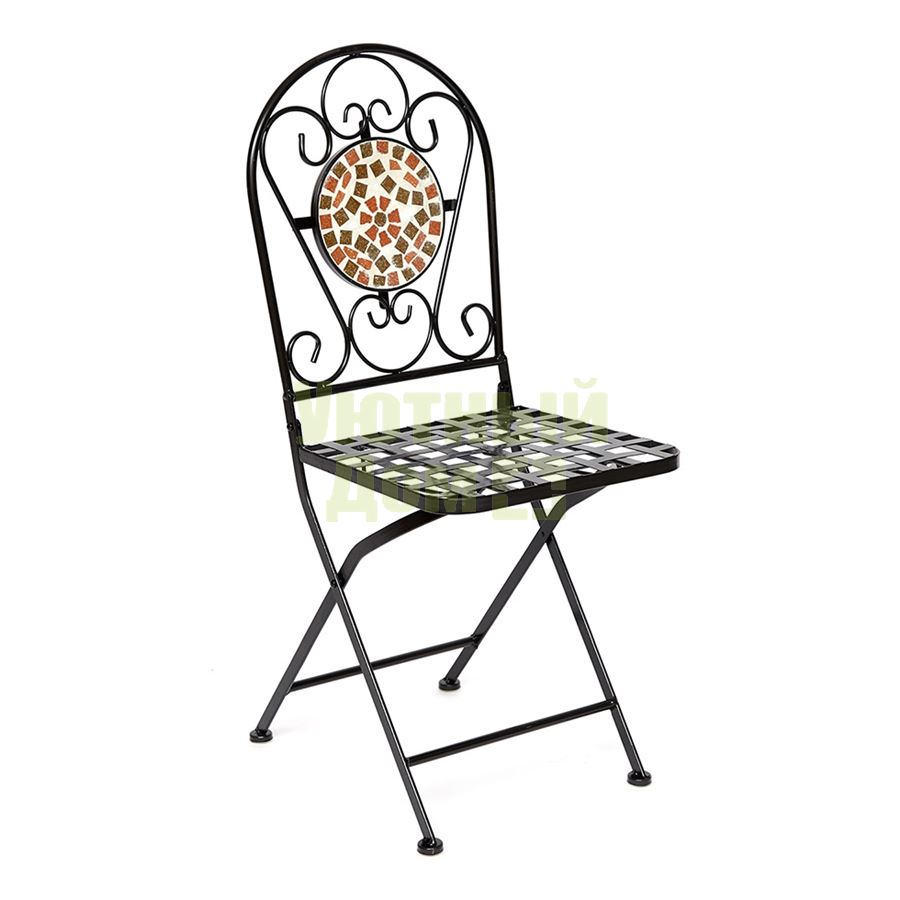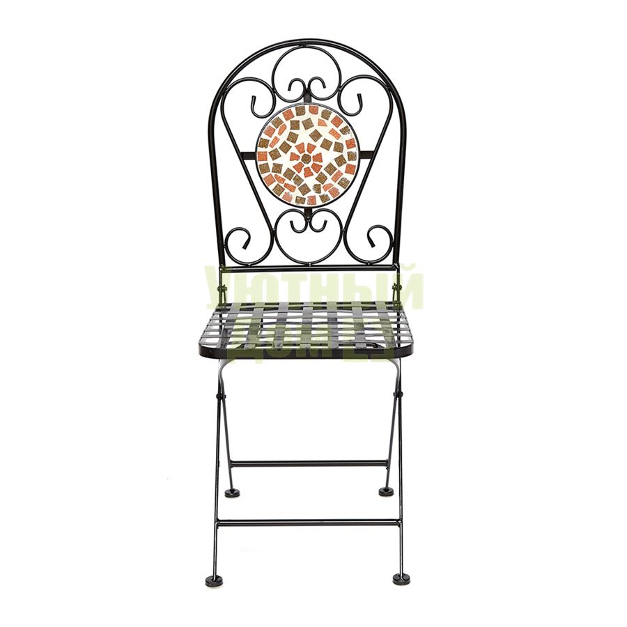 Стул из металла с красивой мозаикой на на спинке, складывающийся. Поставляется 2 шт в 1 коробке. Объем: 0,079 м3