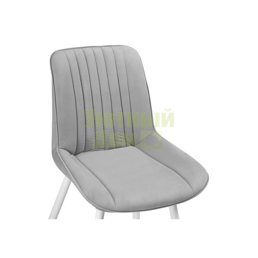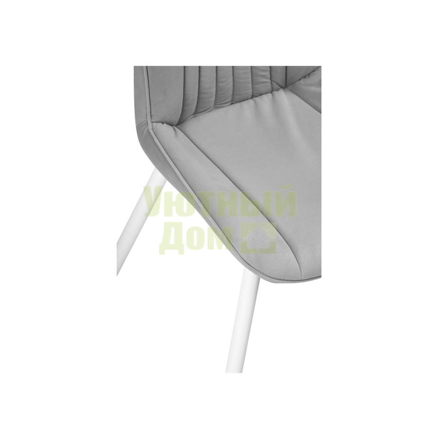 Материал каркаса - Окрашенный металл; Материал сиденья - Велюр; Материал ножек - Окрашенный металл; Материал обивки - Велюр; Цвет каркаса - Белый; Цвет сиденья - Светло-серый; Цвет ножек - Белый; Цвет обивки - Светло-серый; Ширина - 50,5; Глубина - 57; Высота - 83; Ширина сиденья - 47; Глубина сиденья - 41; Высота сиденья - 48;