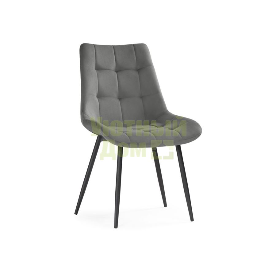 Материал каркаса - Окрашенный металл; Материал сиденья - Велюр; Материал ножек - Окрашенный металл; Материал обивки - Велюр; Цвет каркаса - Черный; Цвет сиденья - Серый; Цвет ножек - Черный; Цвет обивки - Серый; Ширина - 52; Глубина - 58; Высота - 84; Ширина сиденья - 43; Глубина сиденья - 41; Высота сиденья - 44;