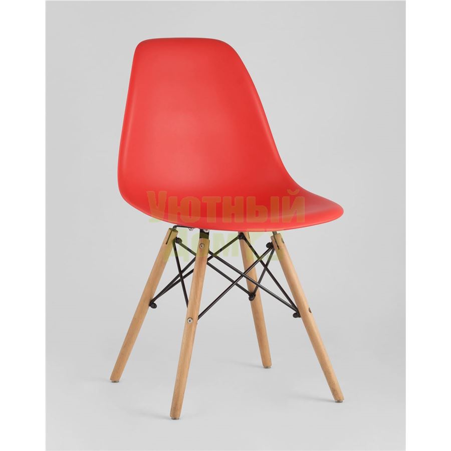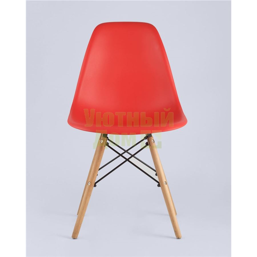 Стул SIMPLE DSW красный, литой полипропилен, стальной каркас, натуральный массив бука доставляется в пределах МКАД бесплатно, при отправке в регионы России - бесплатно сдадим в ТК ПЭК.