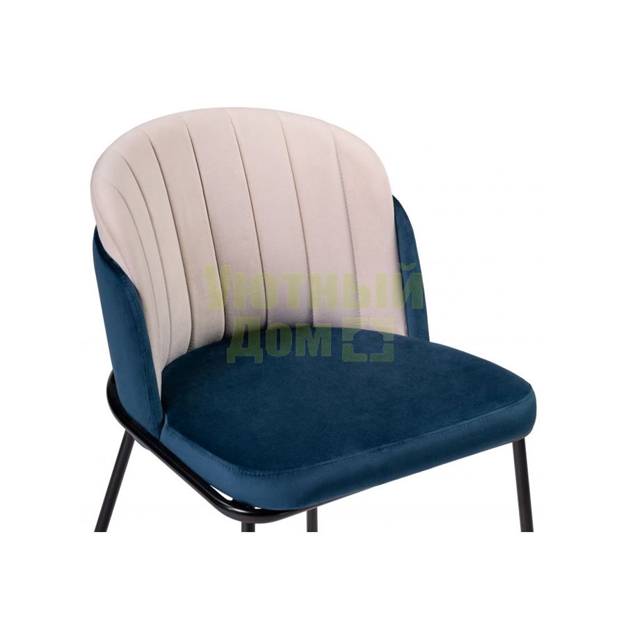 Материал каркаса - Металл; Материал сиденья - Велюр; Материал ножек - Металл; Материал обивки - Велюр; Цвет каркаса - Черный; Цвет сиденья - Синий; Цвет ножек - Черный; Цвет обивки - Синий; Ширина - 54; Глубина - 60; Высота - 76; Ширина сиденья - 50; Глубина сиденья - 46; Высота сиденья - 45;