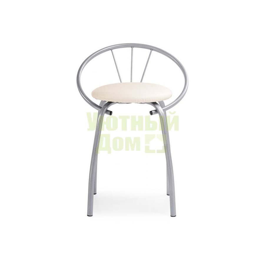 Материал каркаса - Металл; Материал сиденья - Искусственная кожа; Материал ножек - Металл; Материал обивки - Искусственная кожа; Цвет каркаса - Серый; Цвет сиденья - Бежевый; Цвет ножек - Серый; Цвет обивки - Бежевый; Ширина - 46; Глубина - 43; Высота - 65; Ширина сиденья - 34; Глубина сиденья - 34; Высота сиденья - 49;