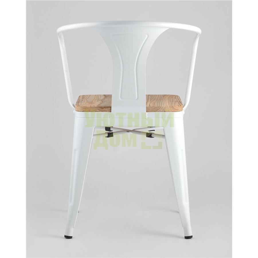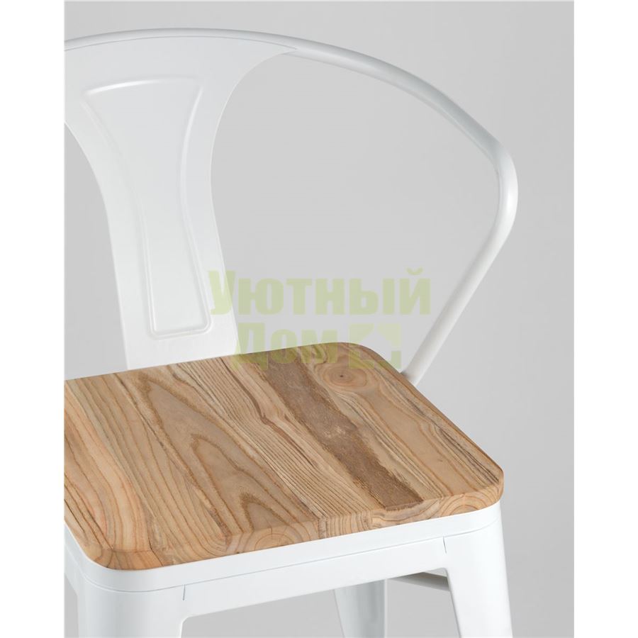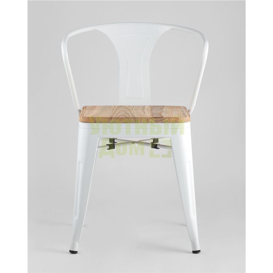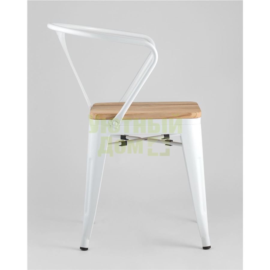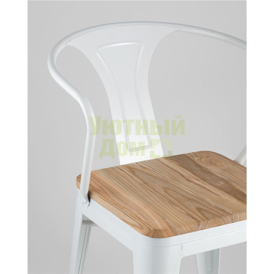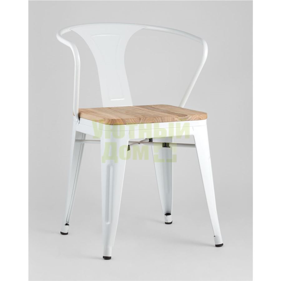 Стул Tolix с подлокотниками белый матовый + светлое дерево, металлическое основание, оцинкованная мет доставляется в пределах МКАД бесплатно, при отправке в регионы России - бесплатно сдадим в ТК ПЭК.