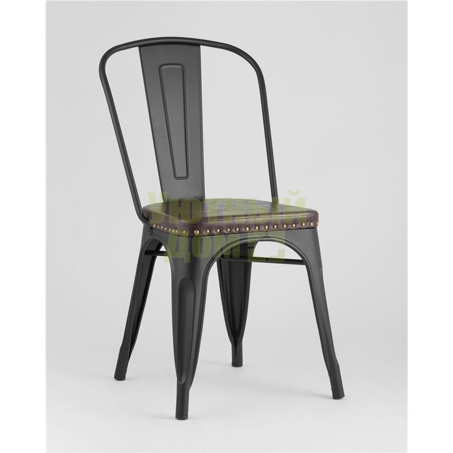 Стул Tolix SOFT черный матовый, экокожа, пластик, металл доставляется в пределах МКАД бесплатно, при отправке в регионы России - бесплатно сдадим в ТК ПЭК.