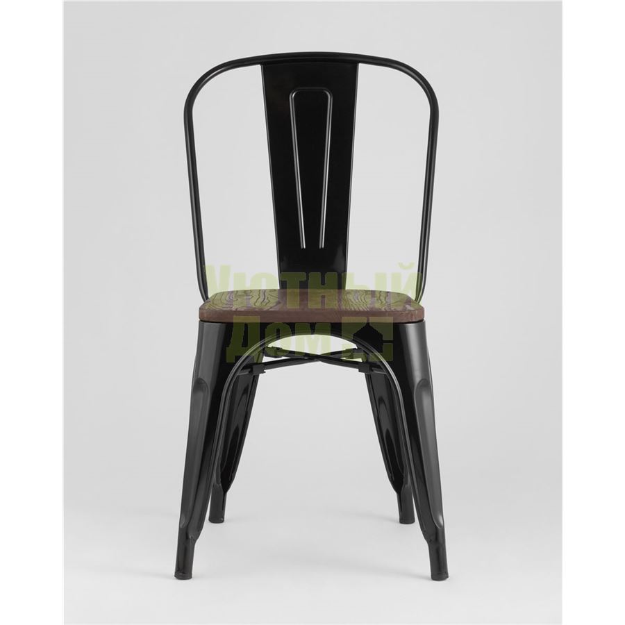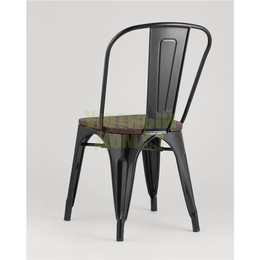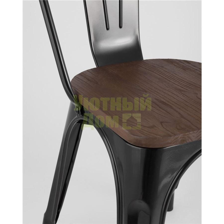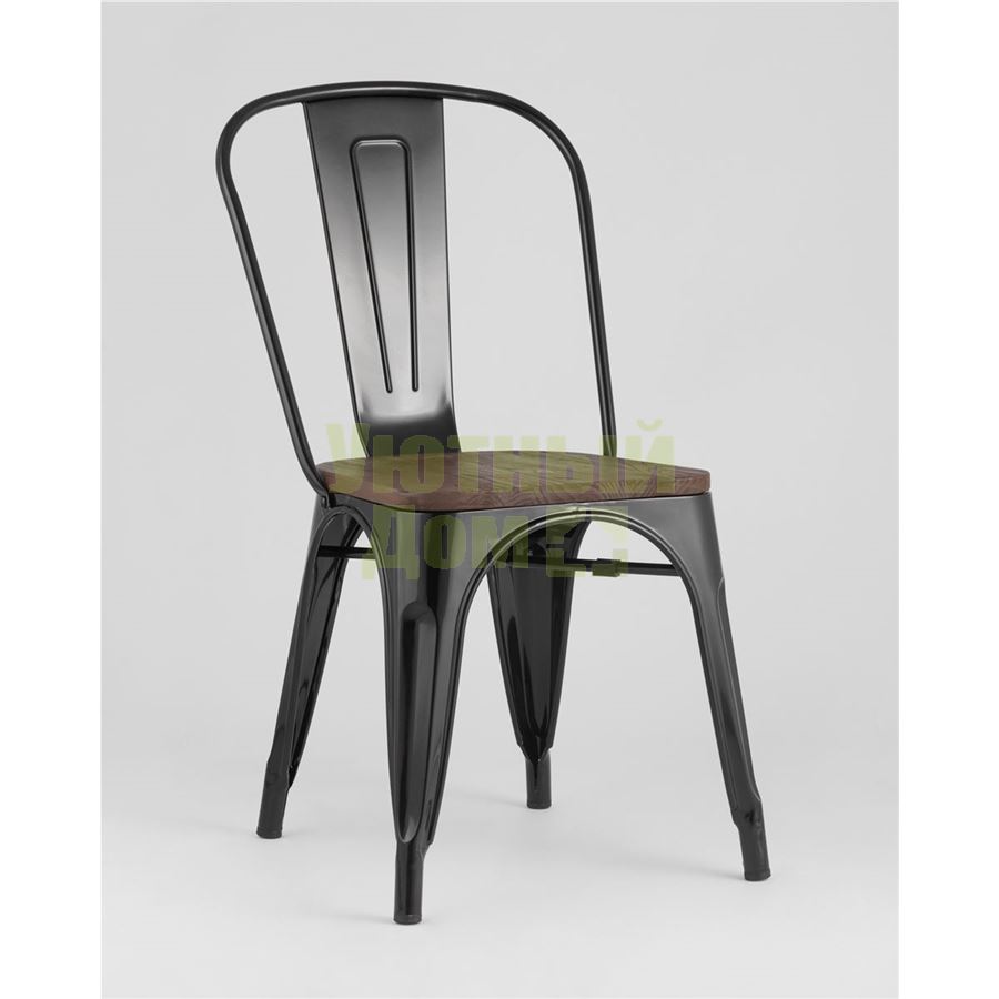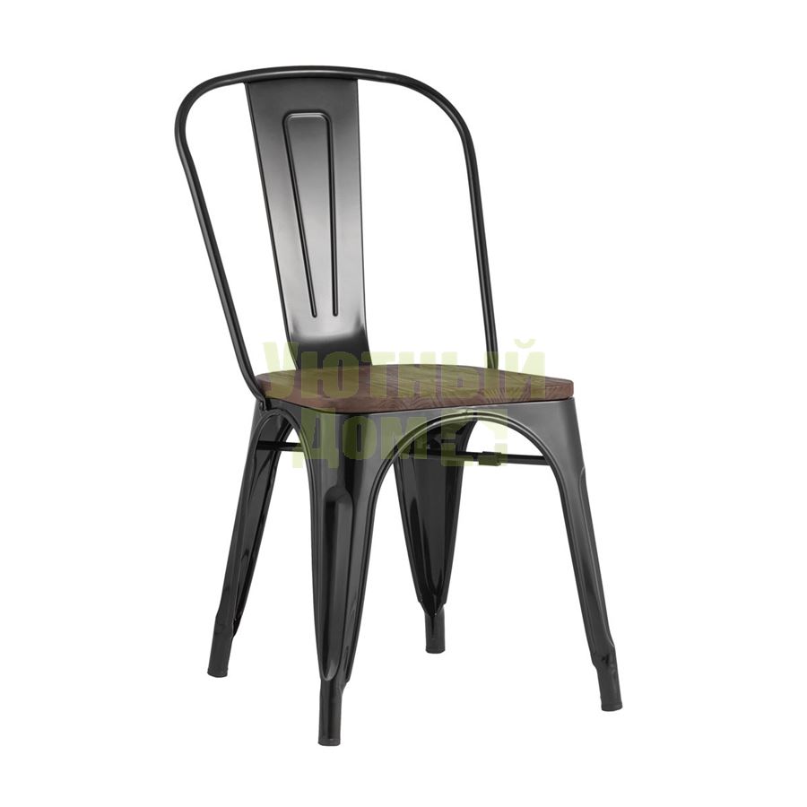 Стул Tolix WOOD черный глянцевый, основание и спинка оцинкованный металл, сиденье тёмное дерево доставляется в пределах МКАД бесплатно, при отправке в регионы России - бесплатно сдадим в ТК ПЭК.