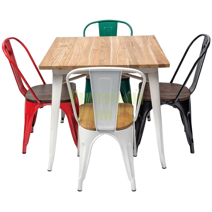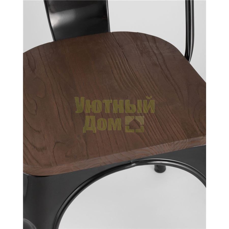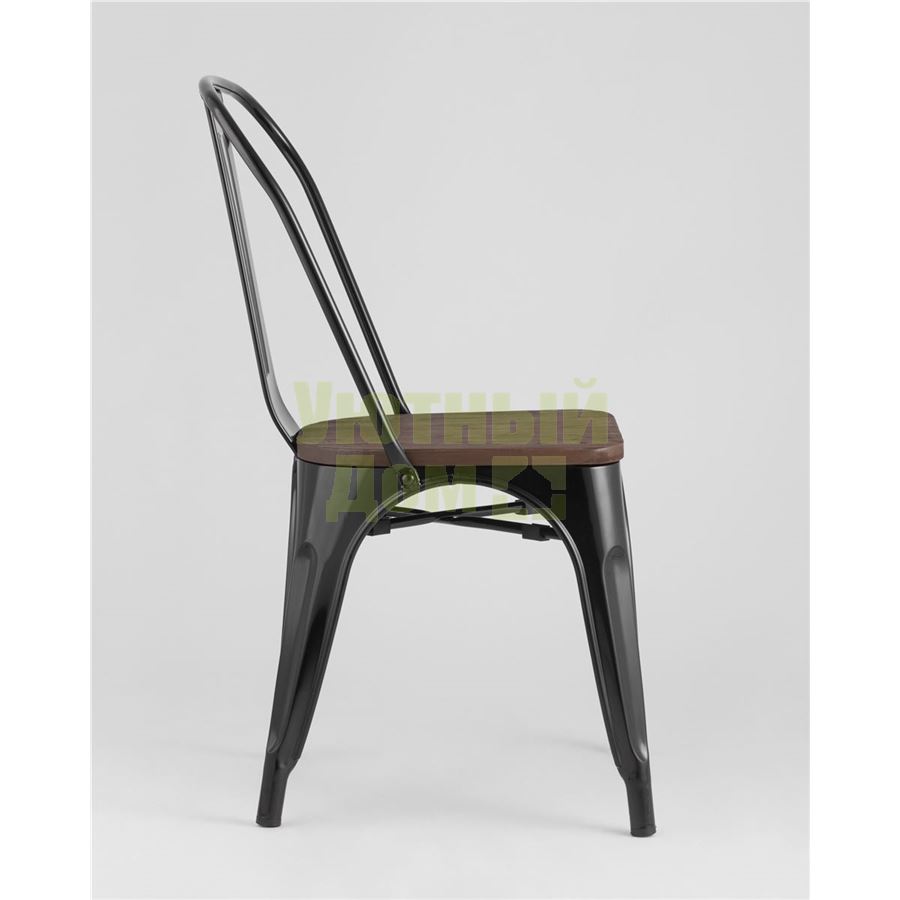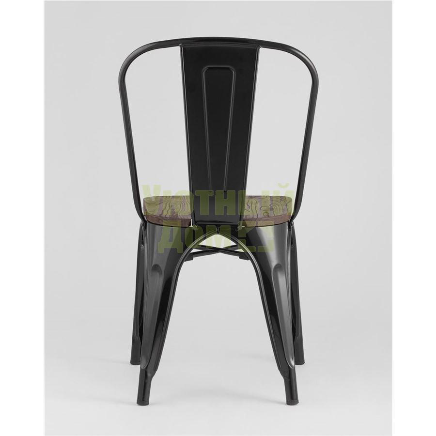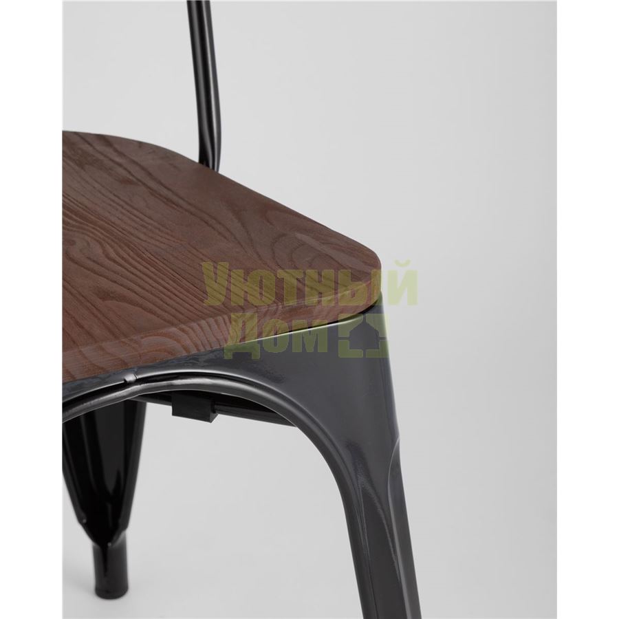 Стул Tolix WOOD черный глянцевый, основание и спинка оцинкованный металл, сиденье тёмное дерево доставляется в пределах МКАД бесплатно, при отправке в регионы России - бесплатно сдадим в ТК ПЭК.