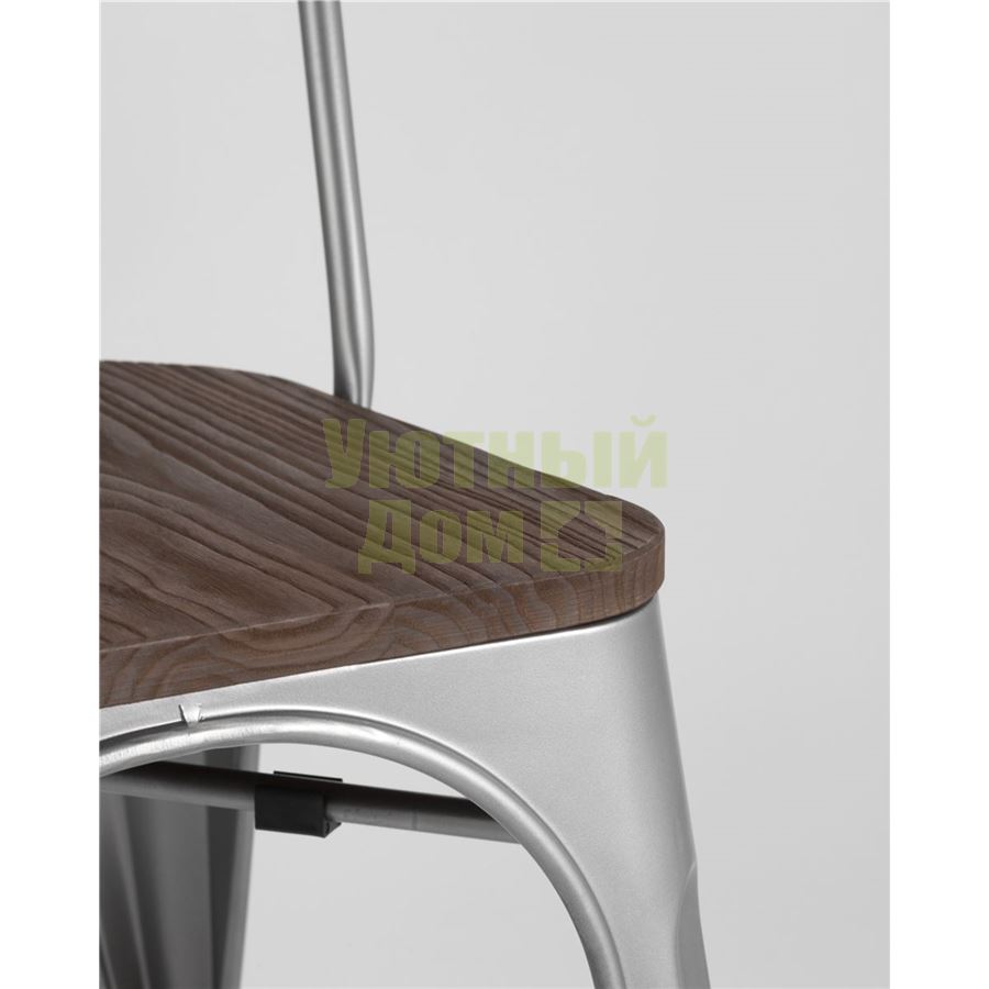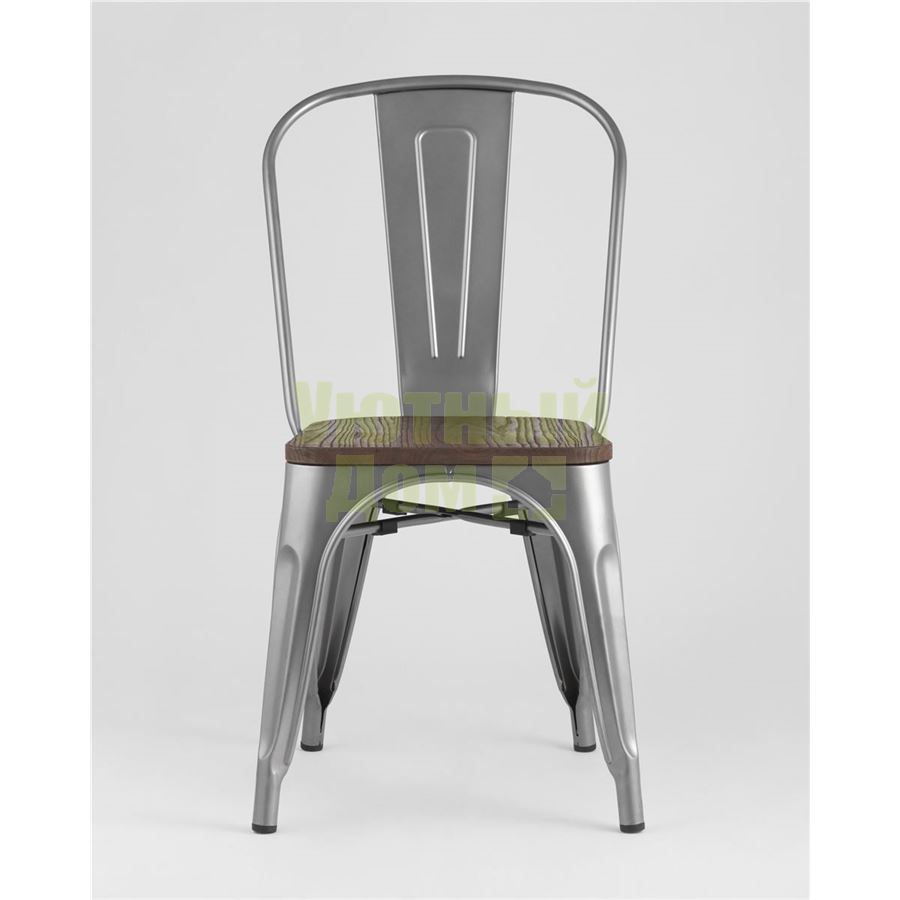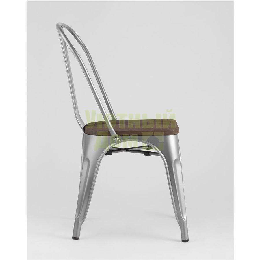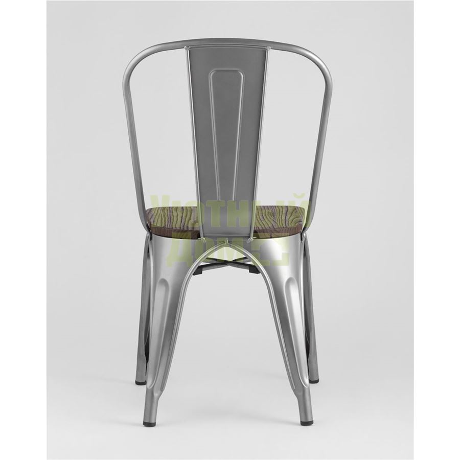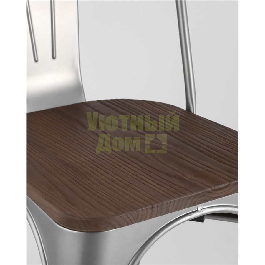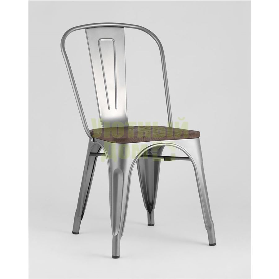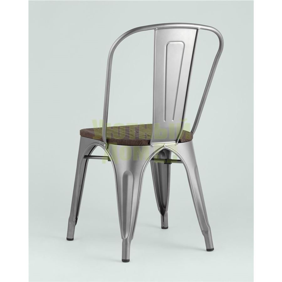 Стул Tolix WOOD серебристый матовый, основание и спинка оцинкованный металл, сиденье тёмное дерево доставляется в пределах МКАД бесплатно, при отправке в регионы России - бесплатно сдадим в ТК ПЭК.