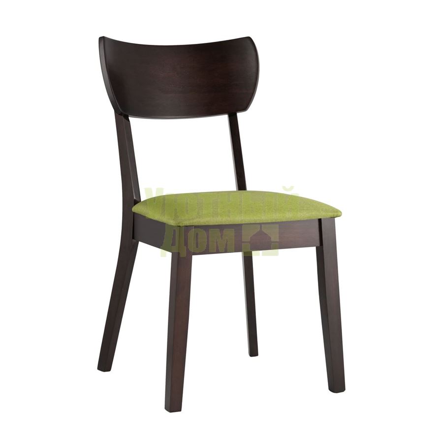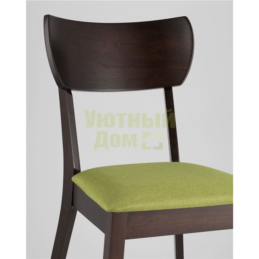 Стул TOMAS салатовый обеденный деревянный массив гевеи с мягким тканевым сиденьем доставляется в пределах МКАД бесплатно, при отправке в регионы России - бесплатно сдадим в ТК ПЭК.