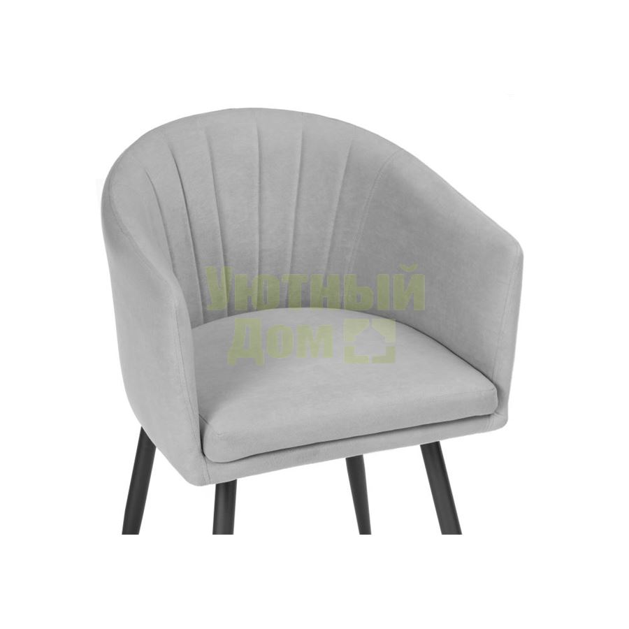 Высота подлокотников: 33 см. Материал каркаса - Металл; Материал сиденья - Велюр; Материал ножек - Металл; Материал обивки - Велюр; Цвет каркаса - Черный; Цвет сиденья - Серый; Цвет ножек - Черный; Цвет обивки - Серый; Ширина - 59; Глубина - 57; Высота - 83; Ширина сиденья - 44; Глубина сиденья - 45; Высота сиденья - 51;