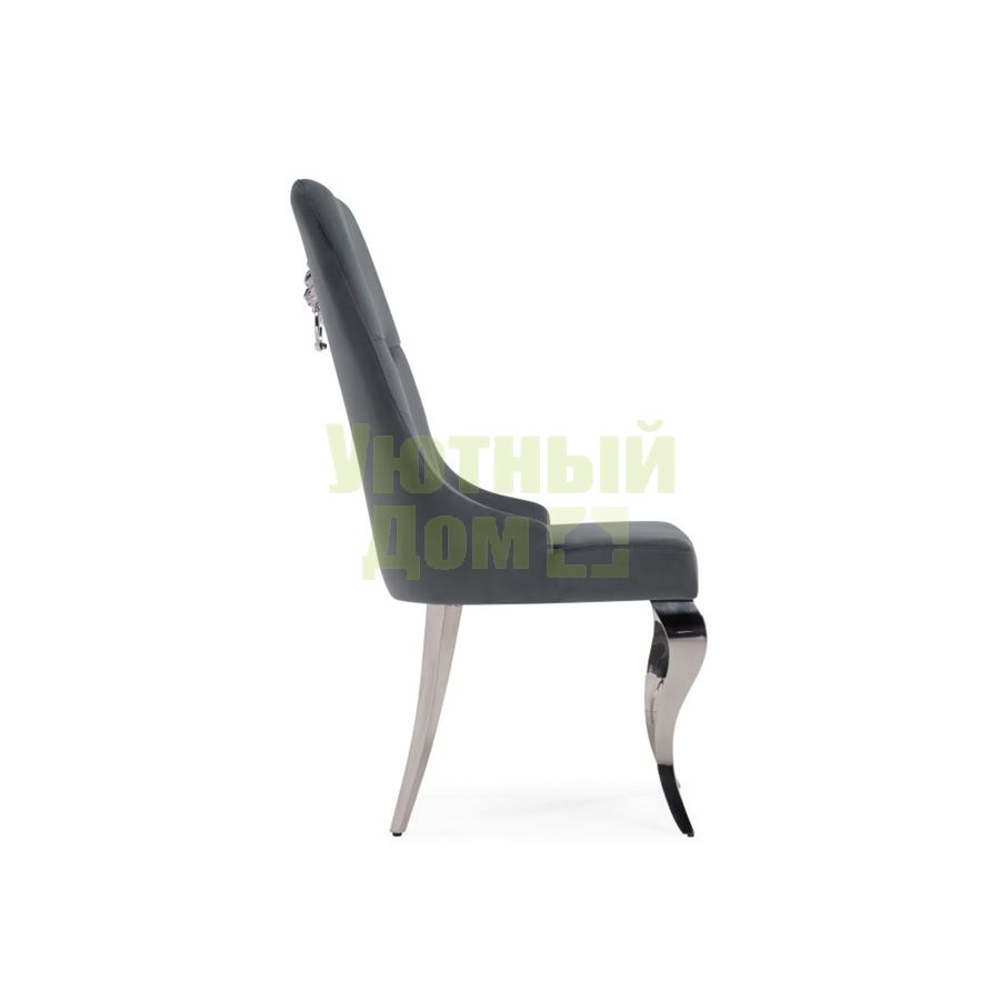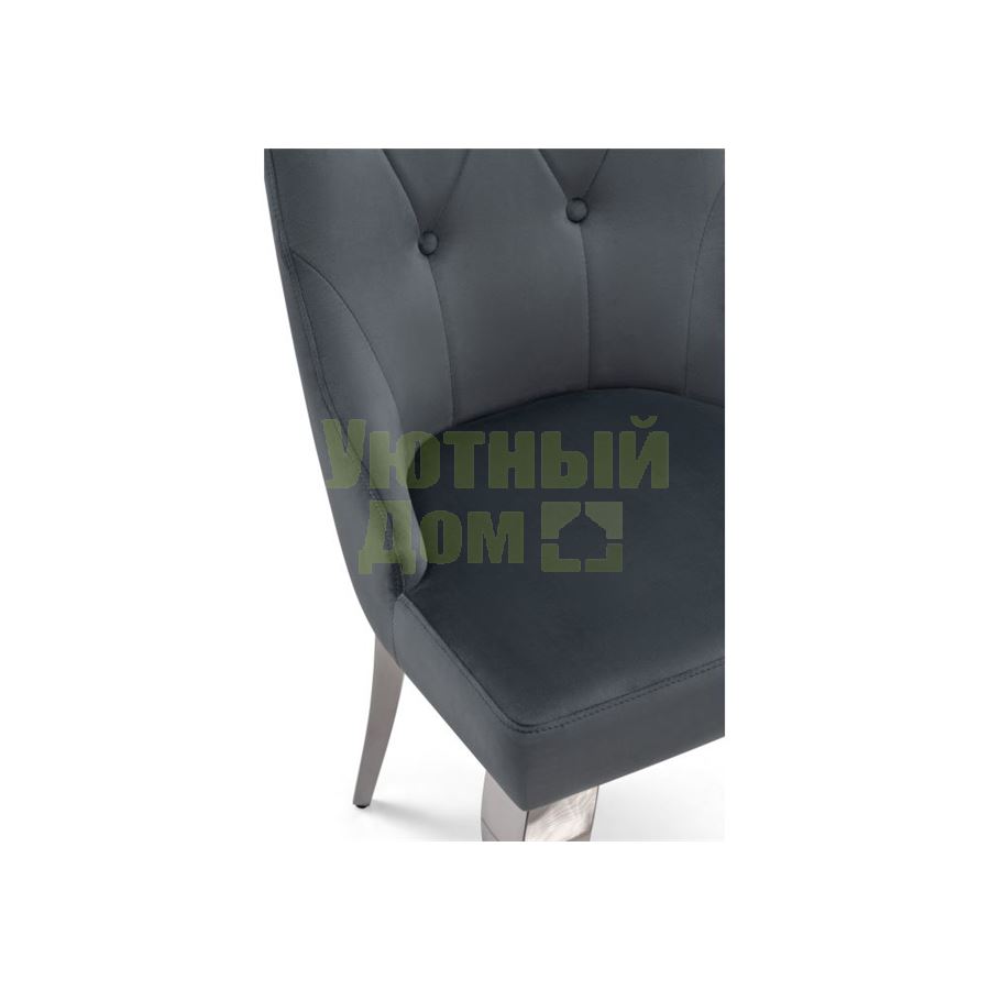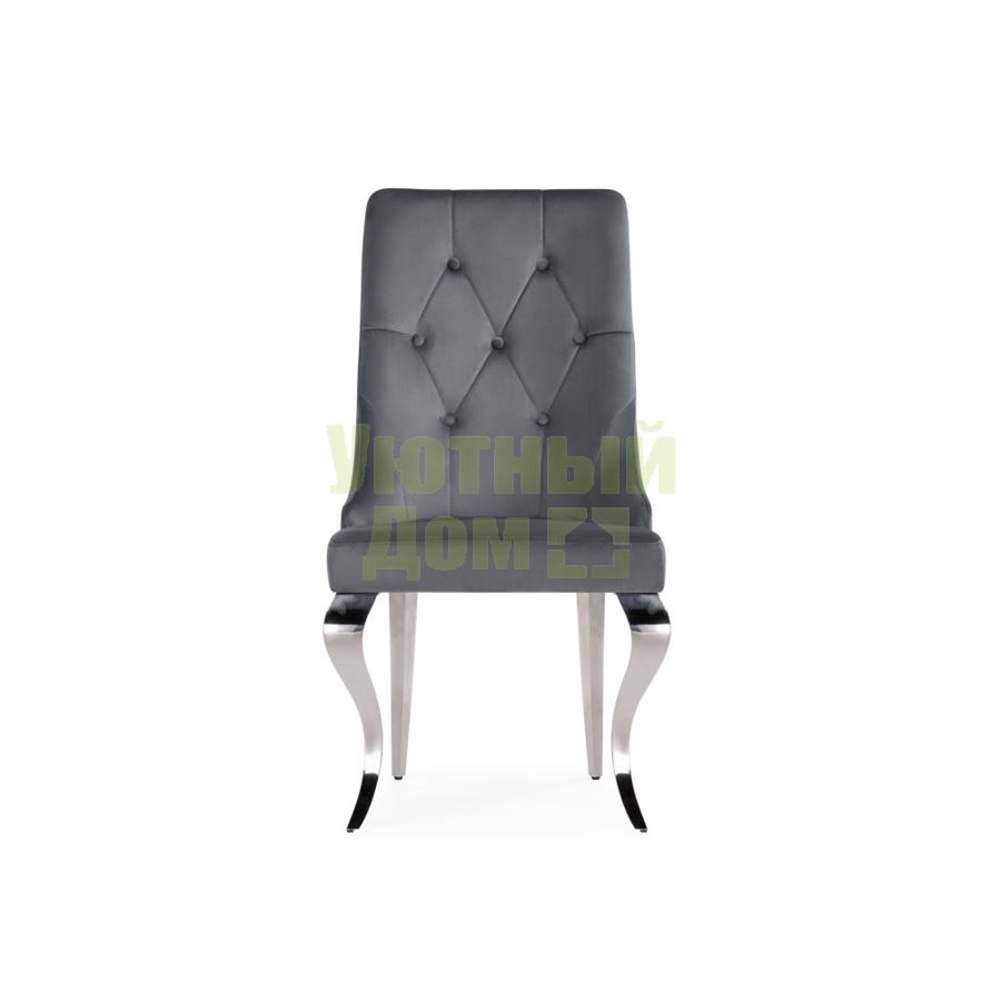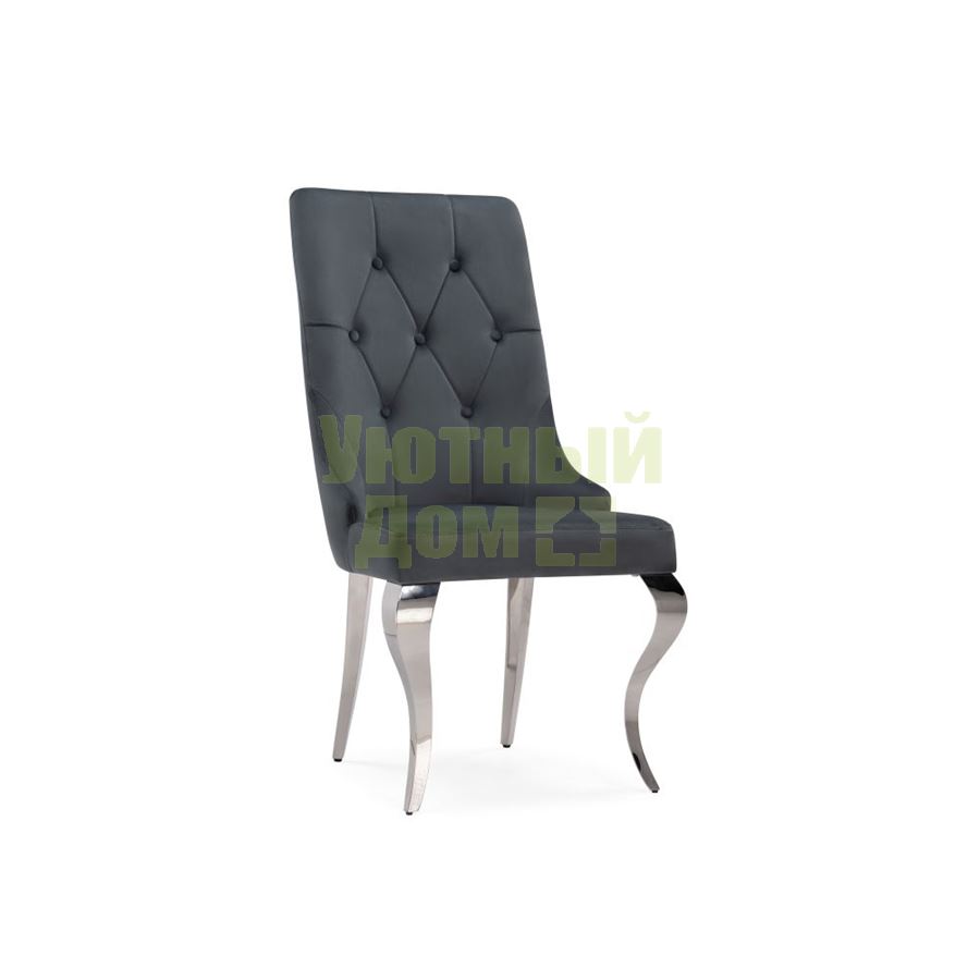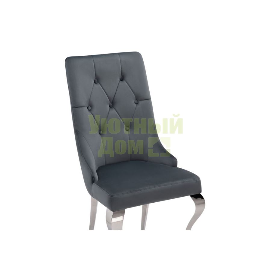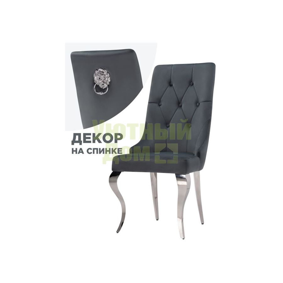 Материал каркаса - Металл; Материал сиденья - Велюр; Материал ножек - Металл; Материал обивки - Велюр; Цвет каркаса - Хромированный металл; Цвет сиденья - Серый; Цвет ножек - Хромированный металл; Цвет обивки - Серый; Ширина - 54; Глубина - 64; Высота - 104; Ширина сиденья - 52; Глубина сиденья - 46; Высота сиденья - 47;