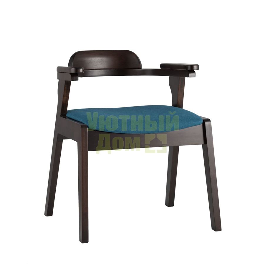Купить Стул VINCENT синий обеденный деревянный массив гевеи с мягким сиденьем со спинкой и подлокотниками