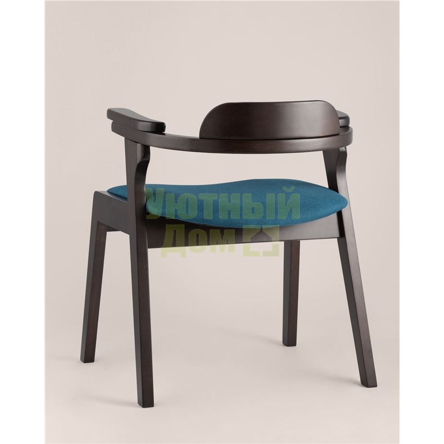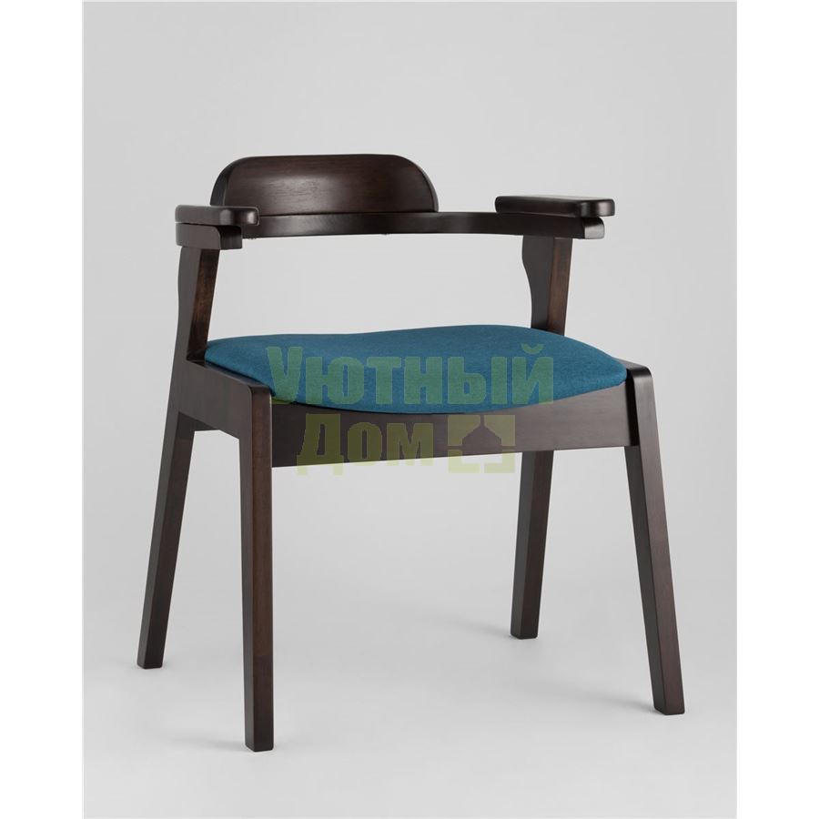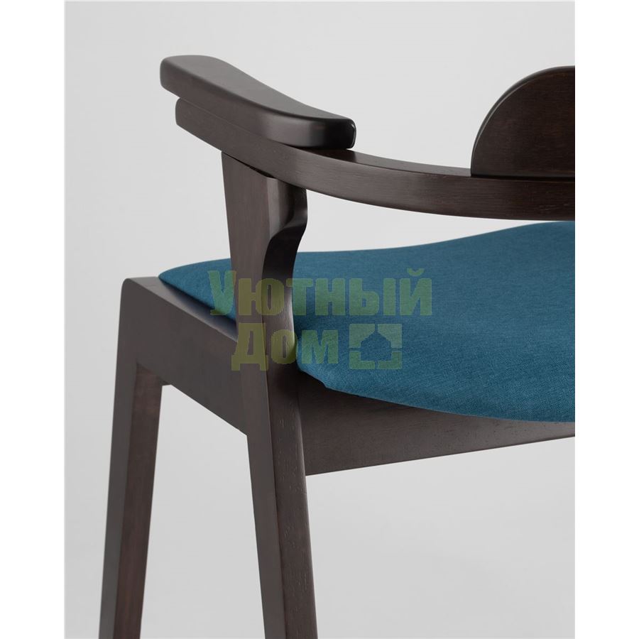 Стул VINCENT синий обеденный деревянный массив гевеи с мягким сиденьем со спинкой и подлокотниками доставляется в пределах МКАД бесплатно, при отправке в регионы России - бесплатно сдадим в ТК ПЭК.