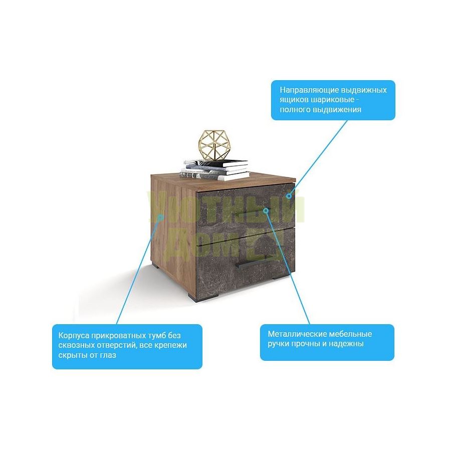 Тумбочка Брайтон T45 ( Тумба прикроватная БРАЙТОН Т45 ДУБ КРАФТ + БЕТОН)