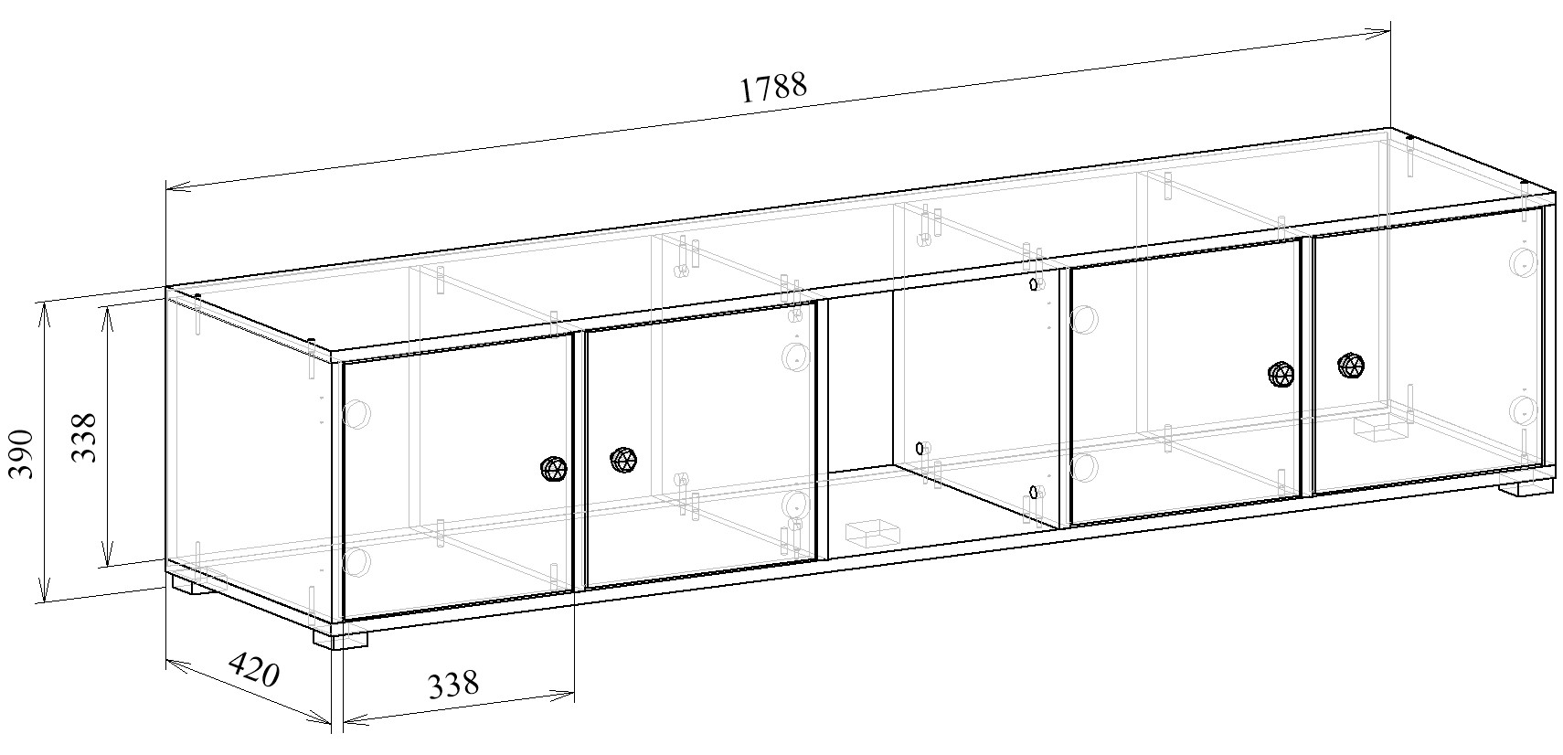 Комплект состоит из: стеллажа-тумбы Прайм-51 (1 шт.), дверцы Прайм (4 шт.).