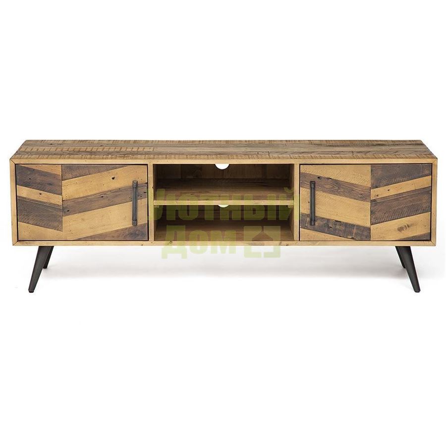 2 распашных ящика, полка в центральной части. Материал: дерево акации с имитацией recycled. Цвет: brown recycled, микс светлых и тёмных тонов. Размеры: 55х165х45 см.