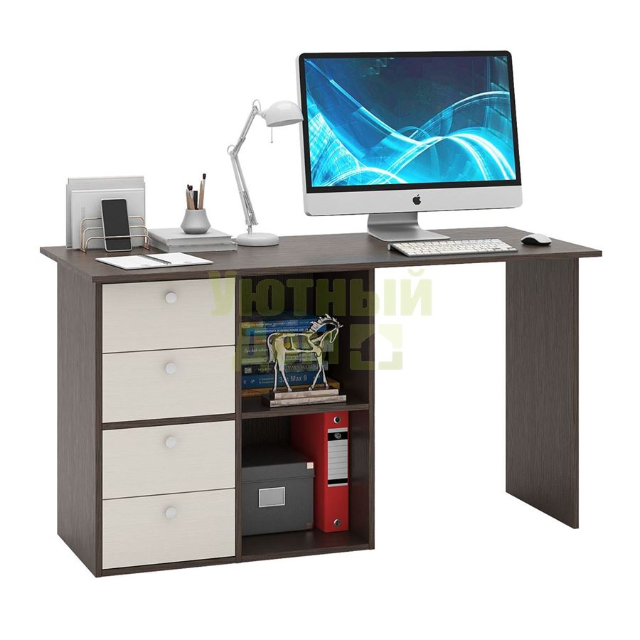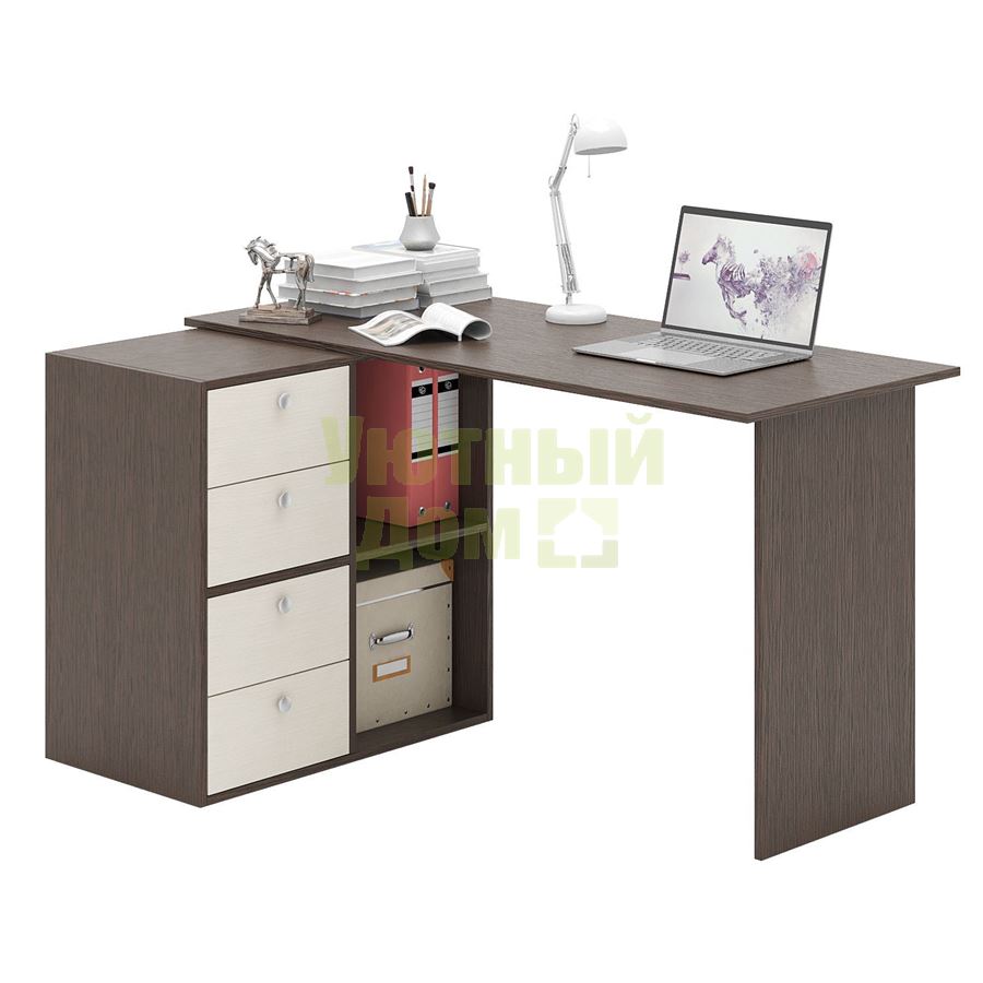 Стол является комплектом модульной системы Прайм. Вы можете собрать индивидуальный комплект из столешниц разных размеров, тумб разных форм и их наполнений (дверок, блока ящиков, ящиков со стеклом или больших ящиков). Тип ручки: кнопка. Декоративные заглушки в тон мебели. Войлочные и пластиковые подпятники. В выдвижных ящиках используются качественные роликовые направляющие. Сборку данного товара желательно осуществлять вдвоем во избежание травмоопасных ситуаций или механических повреждений мебели. Комплект состоит из: столешницы Прайм-14 (1 шт.), тумбы Прайм-22 (1 шт.), блока ящиков Прайм (2 шт.) Стол можно собрать как в правом, так и в левом исполнении. Благодаря универсальности конструкции, вы можете установить как прямой, так и угловой вариант стола.