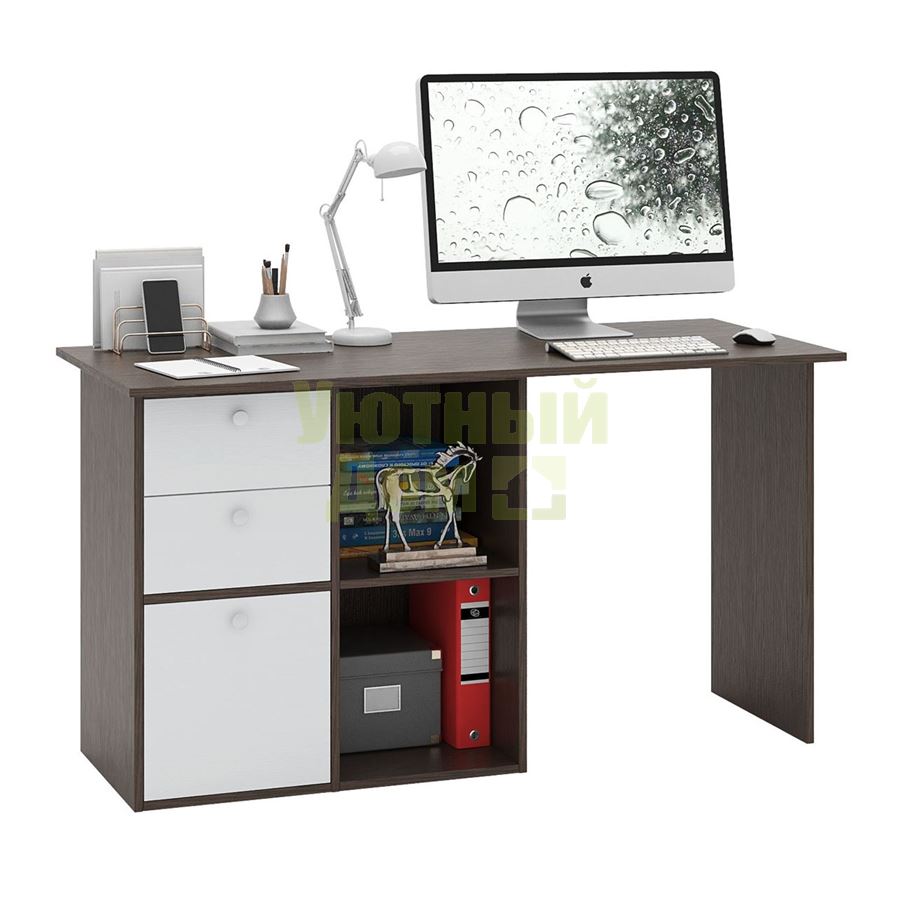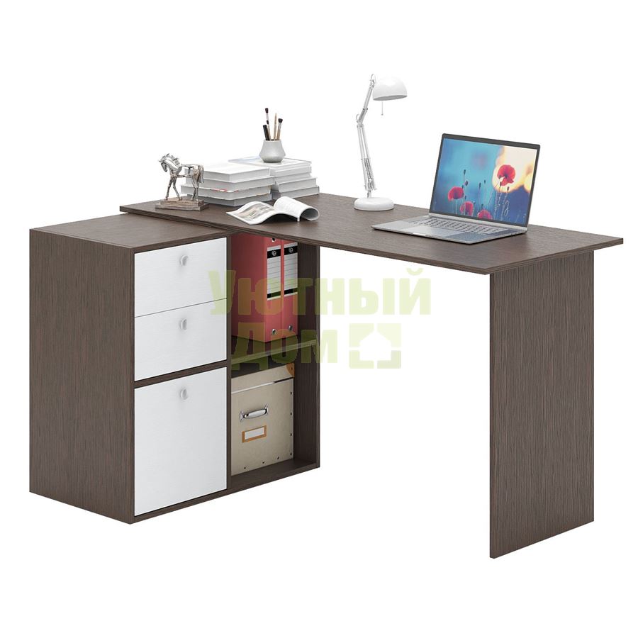 Стол является комплектом модульной системы Прайм. Вы можете собрать индивидуальный комплект из столешниц разных размеров, тумб разных форм и их наполнений (дверок, блока ящиков, ящиков со стеклом или больших ящиков). Тип ручки: кнопка. Декоративные заглушки в тон мебели. Войлочные и пластиковые подпятники. В выдвижных ящиках используются качественные роликовые направляющие. Сборку данного товара желательно осуществлять вдвоем во избежание травмоопасных ситуаций или механических повреждений мебели. Комплект состоит из: столешницы Прайм-14 (1 шт.), тумбы Прайм-22 (1 шт.), блока ящиков Прайм (1 шт.), большого ящика Прайм (1 шт.) Стол можно собрать как в правом, так и в левом исполнении. Благодаря универсальности конструкции, вы можете установить как прямой, так и угловой вариант стола.