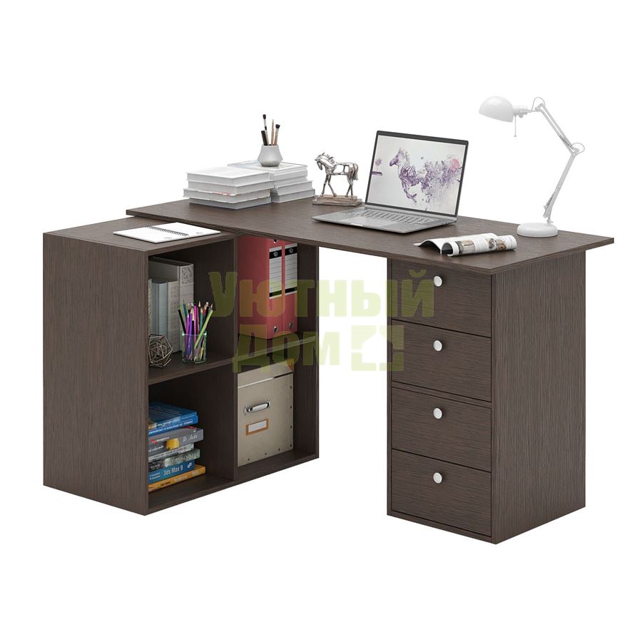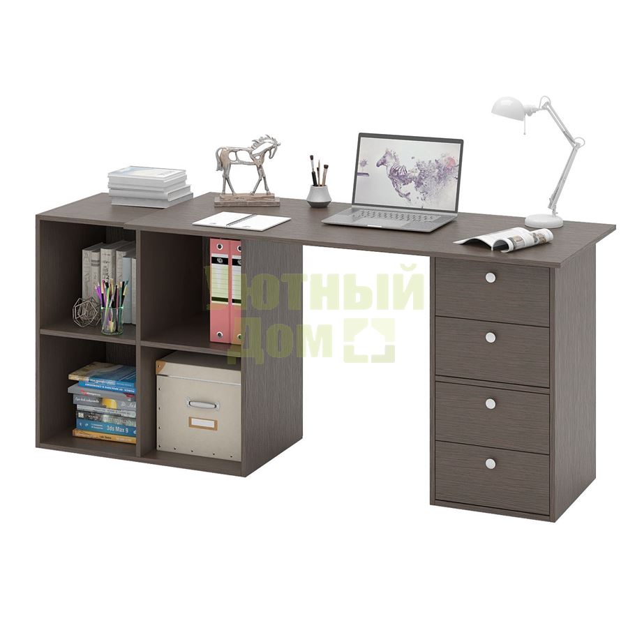 Стол является комплектом модульной системы Прайм. Вы можете собрать индивидуальный комплект из столешниц разных размеров, тумб разных форм и их наполнений (дверок, блока ящиков, ящиков со стеклом или больших ящиков). Тип ручки: кнопка. Декоративные заглушки в тон мебели. Войлочные и пластиковые подпятники. В выдвижных ящиках используются качественные роликовые направляющие. Сборку данного товара желательно осуществлять вдвоем во избежание травмоопасных ситуаций или механических повреждений мебели. Комплект состоит из: столешницы Прайм-14 (1 шт.), полки-тумбы Прайм-21 (1 шт.), тумбы Прайм-22 (1 шт.), блока ящиков Прайм (2 шт.) Стол можно собрать как в правом, так и в левом исполнении. Благодаря универсальности конструкции, вы можете установить как прямой, так и угловой вариант стола.